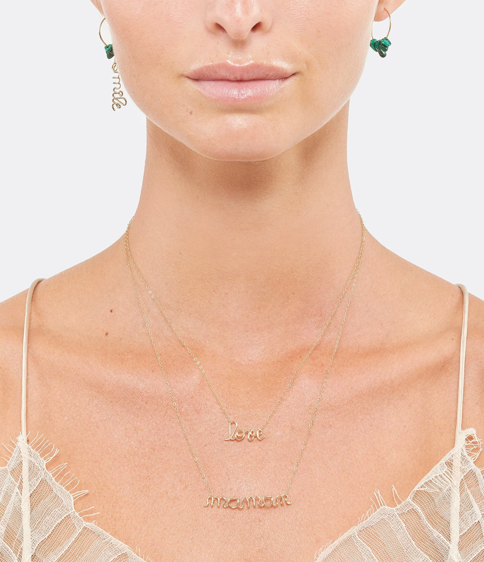 Collier sur chaîne avec l’inscription de votre choix en fil gold-filled. Fermoir classique à ressort avec contre-anneaux.