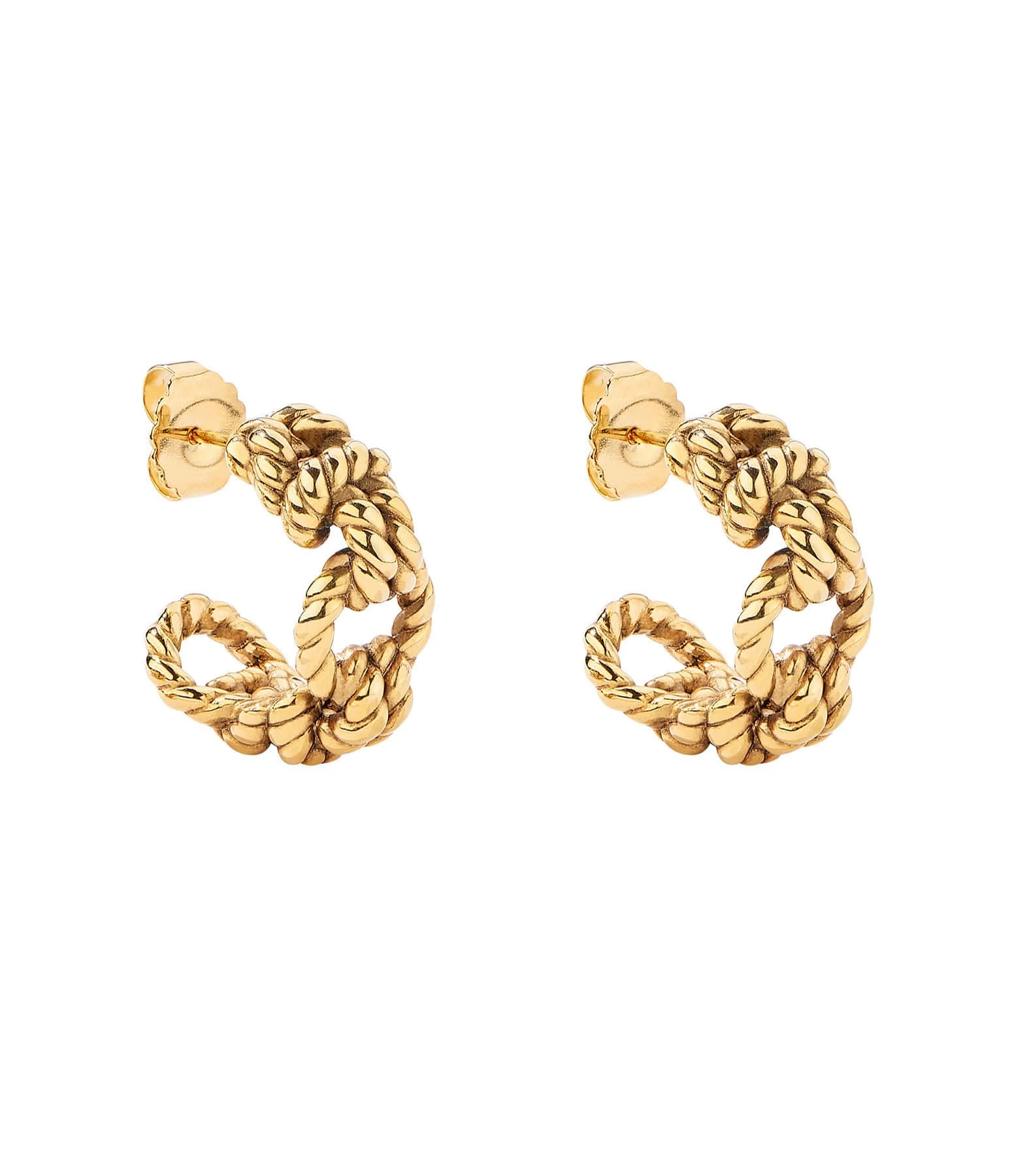 Boucles d’oreilles créoles dorées effet corde. Fermoirs poussettes.