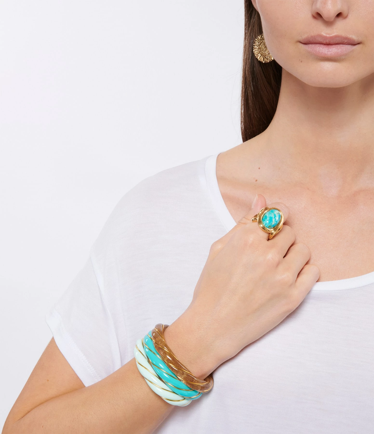 Conseil stylistique : Avec ses couleurs franches et ses volumes généreux, la collection Diana est inspirée par les années 60, les torques hippies et notamment par Diana Ross qui accumulait les jolis bracelets torsadés autour de ses poignets.