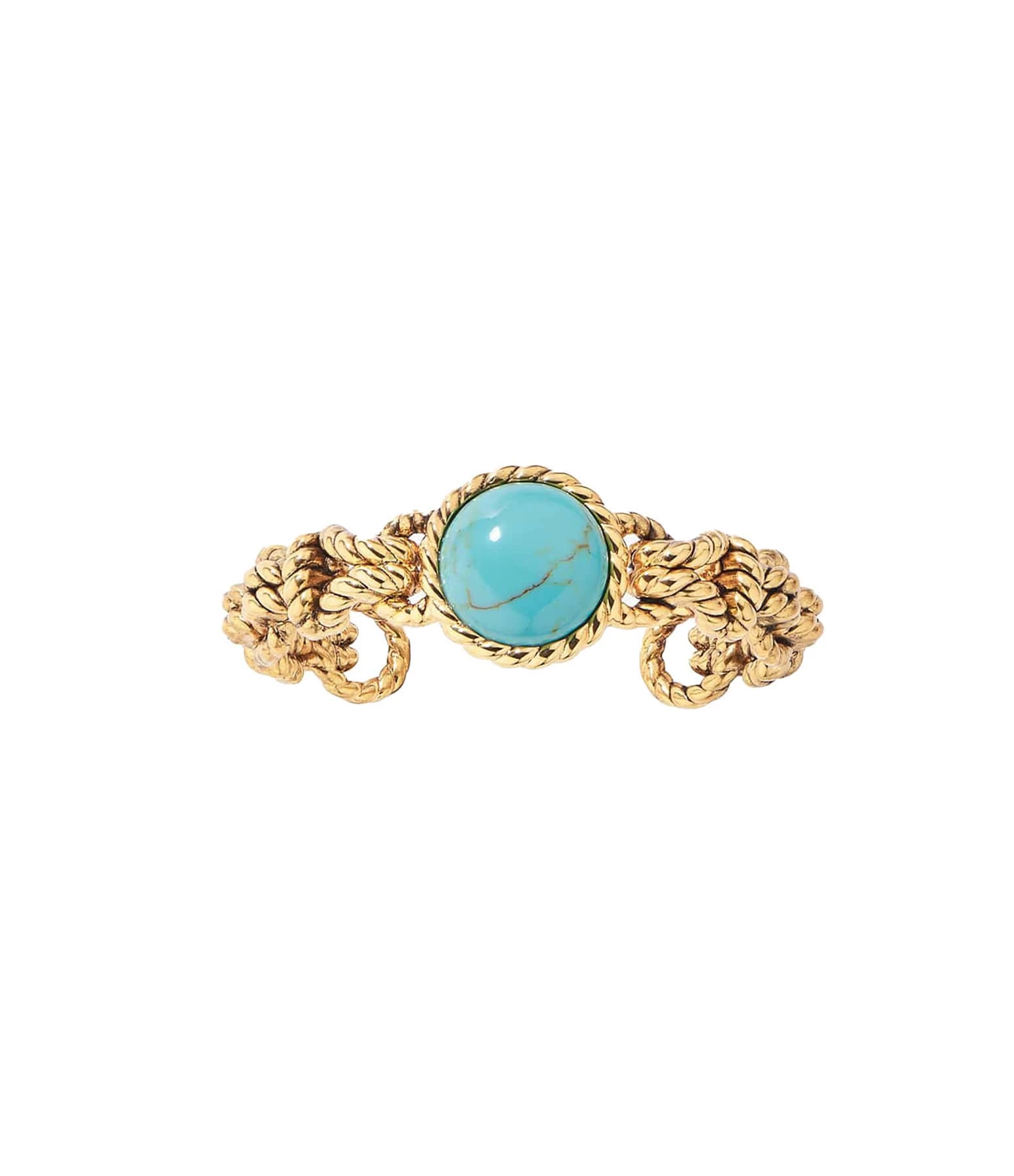 Bracelet jonc doré effet corde avec cabochon en turquoise. Jonc rigide, non réglable.