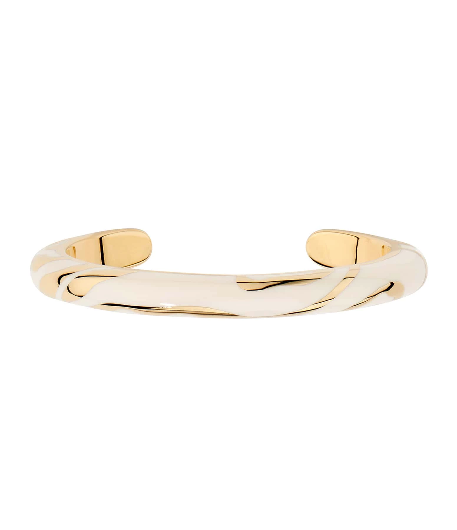 Bracelet jonc doré effet marbré en bakélite ivoire. Jonc rigide, non réglable.