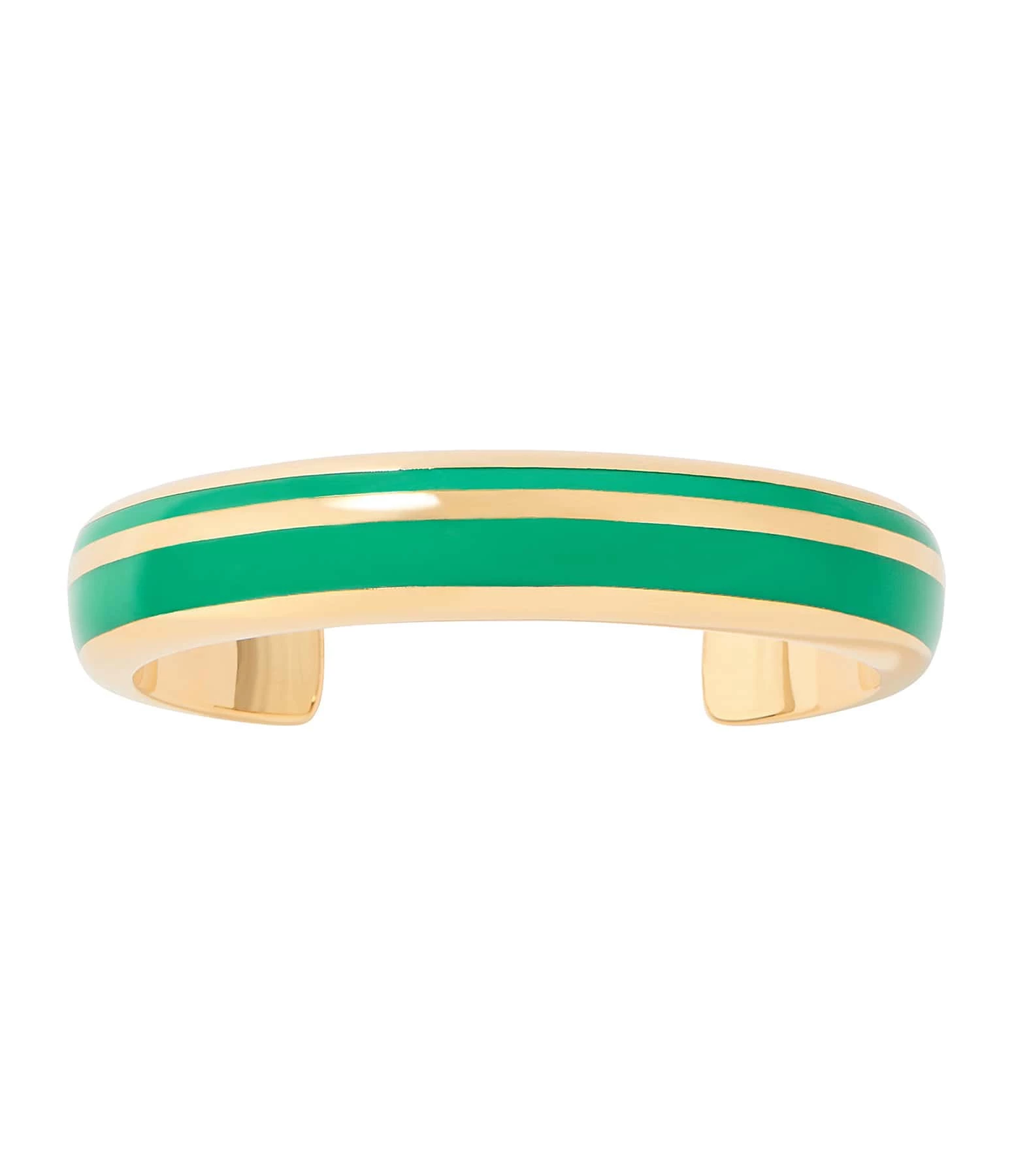 Bracelet jonc doré avec rayures en bakélite verte. Jonc rigide, non réglable.