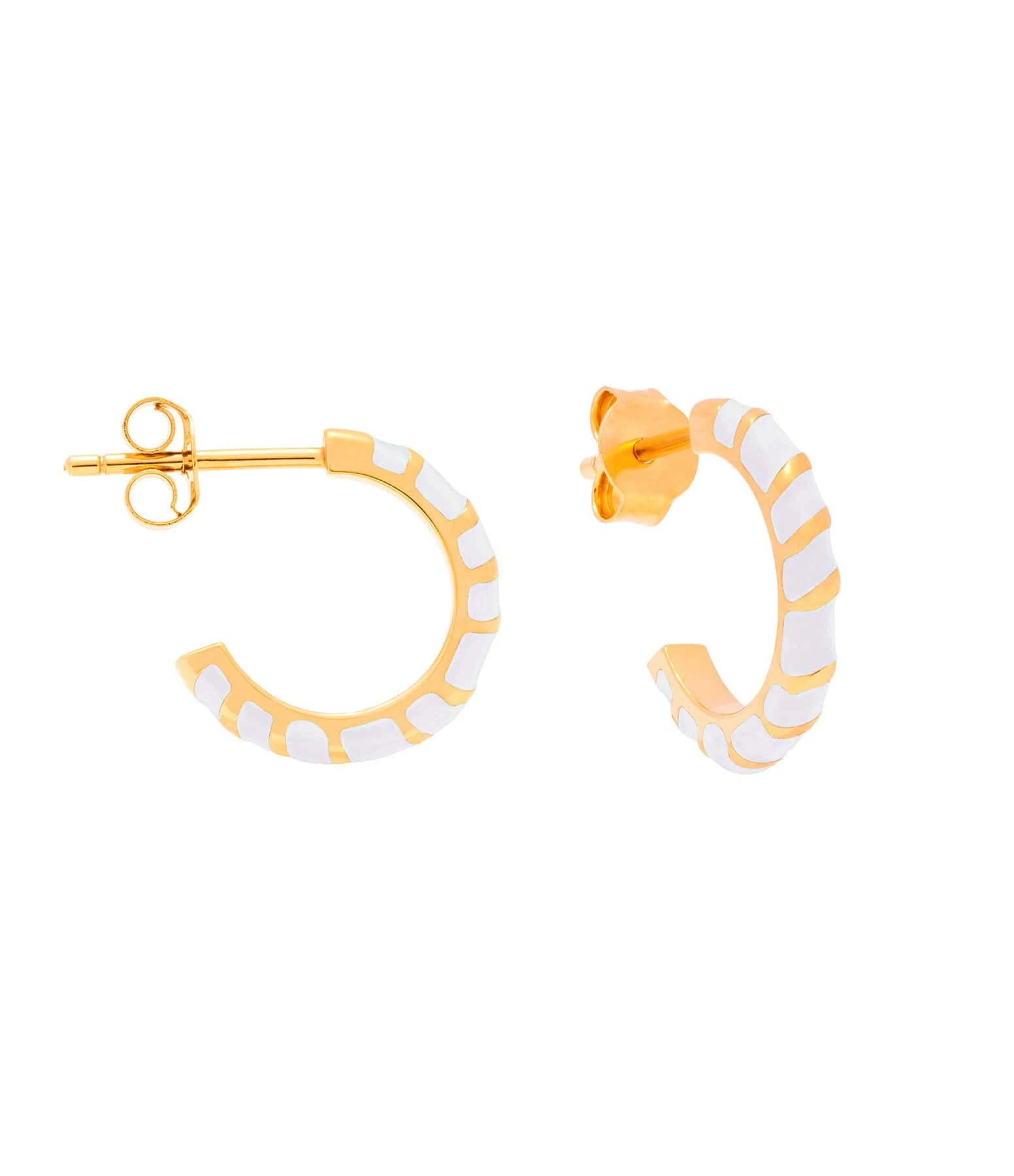 Créoles en vermeil entrelacé de laque blanche. Fermoir poussette. Vendues à la paire.