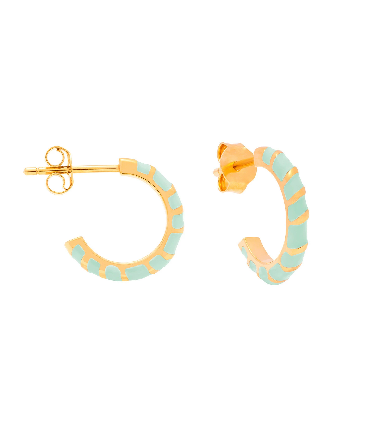 Créoles en vermeil entrelacé de laque vert clair. Fermoir poussette. Vendues à la paire.