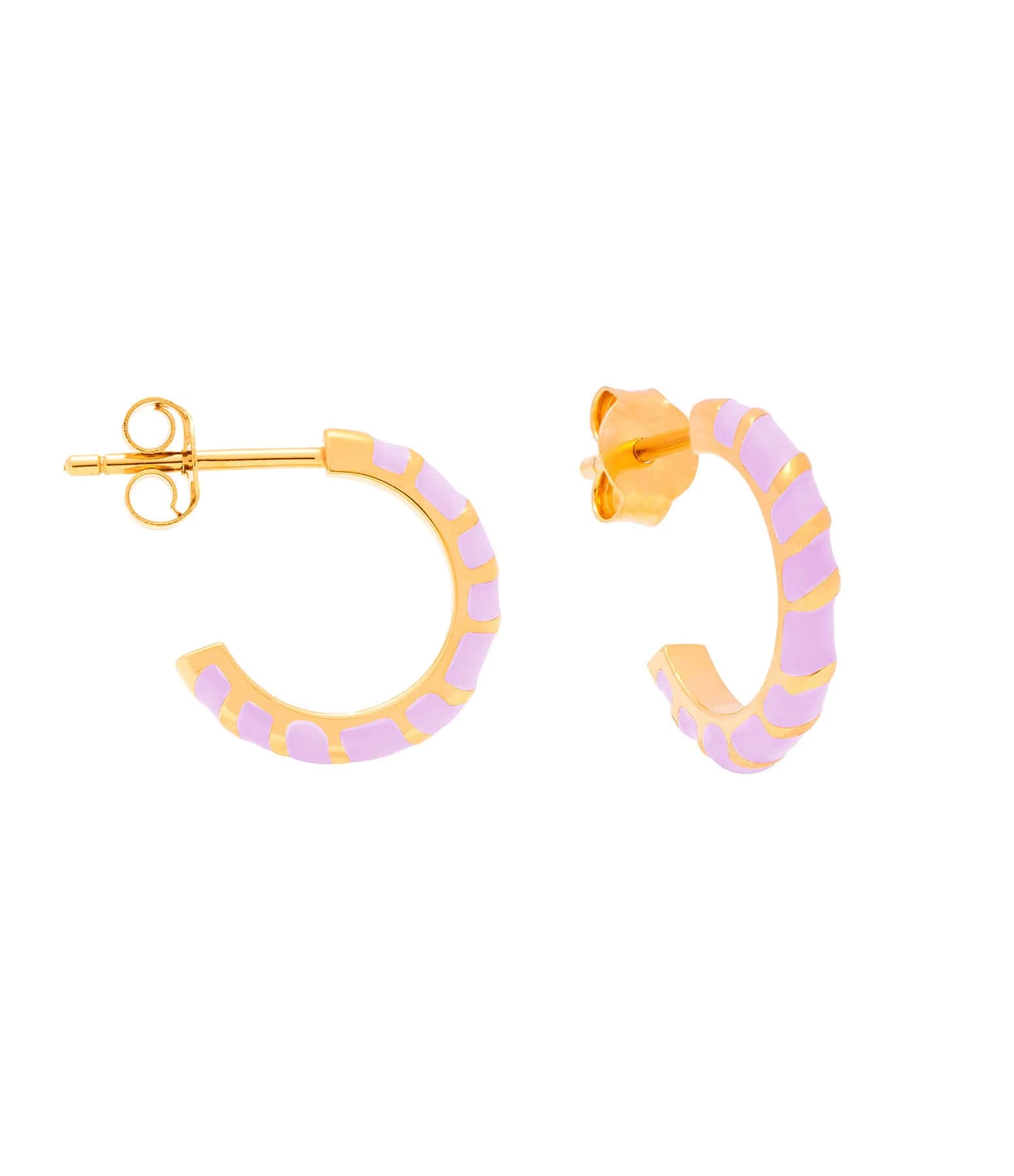 Créoles en vermeil entrelacé de laque parme. Fermoir poussette. Vendues à la paire.