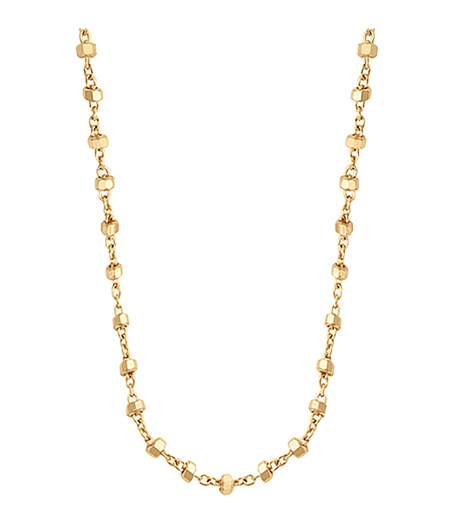 Chaîne seule en maille forçat diamantée (ornée de petites perles facettées) en or jaune. Fermoir à ressort.