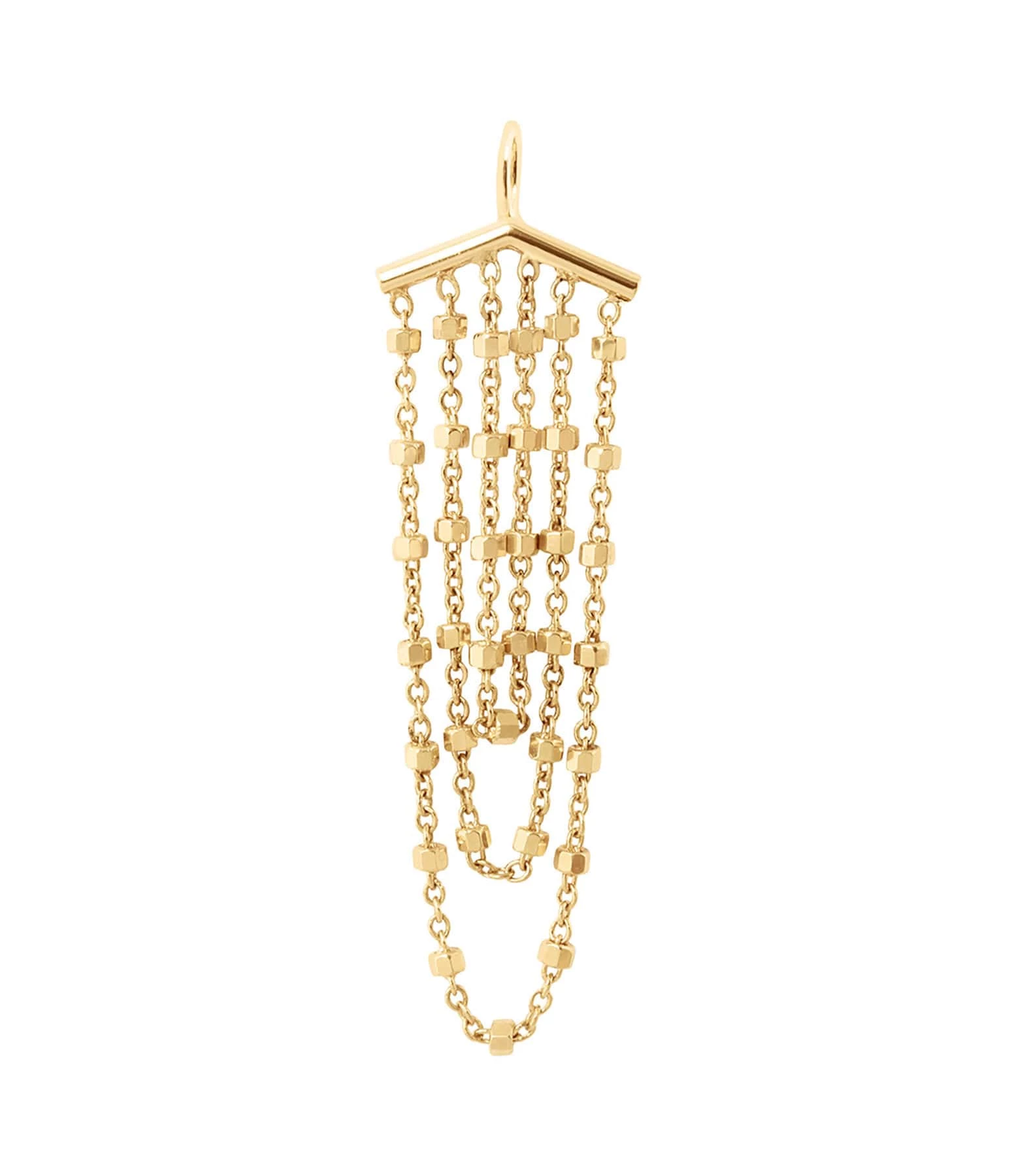 Pendentif en or jaune composé de trois chaînes en maille diamantée (ornée de petites perles facettées).