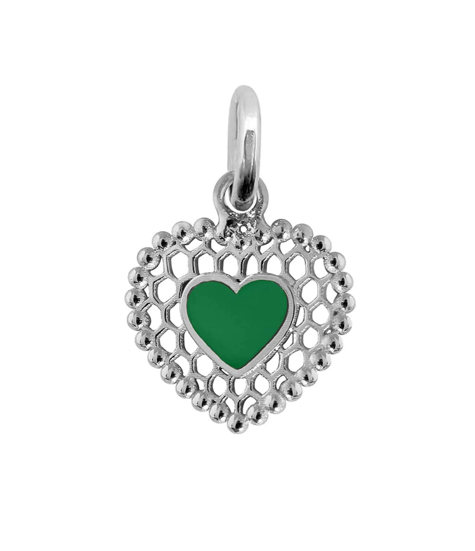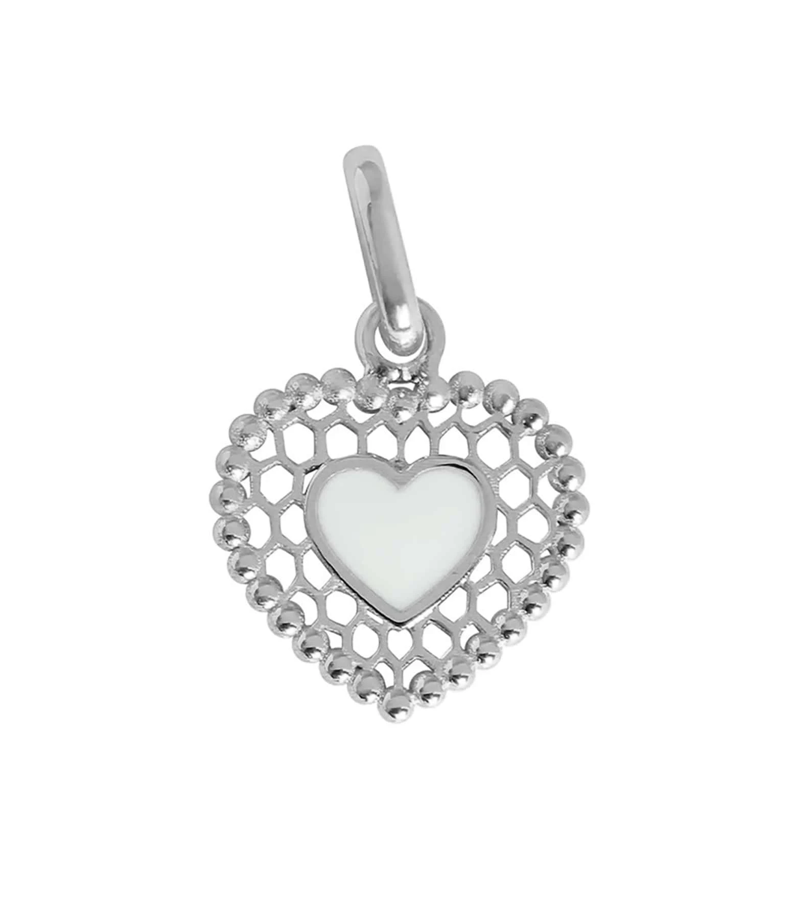 Pendentif cœur dentelle en or blanc agrémenté de résine colorée.