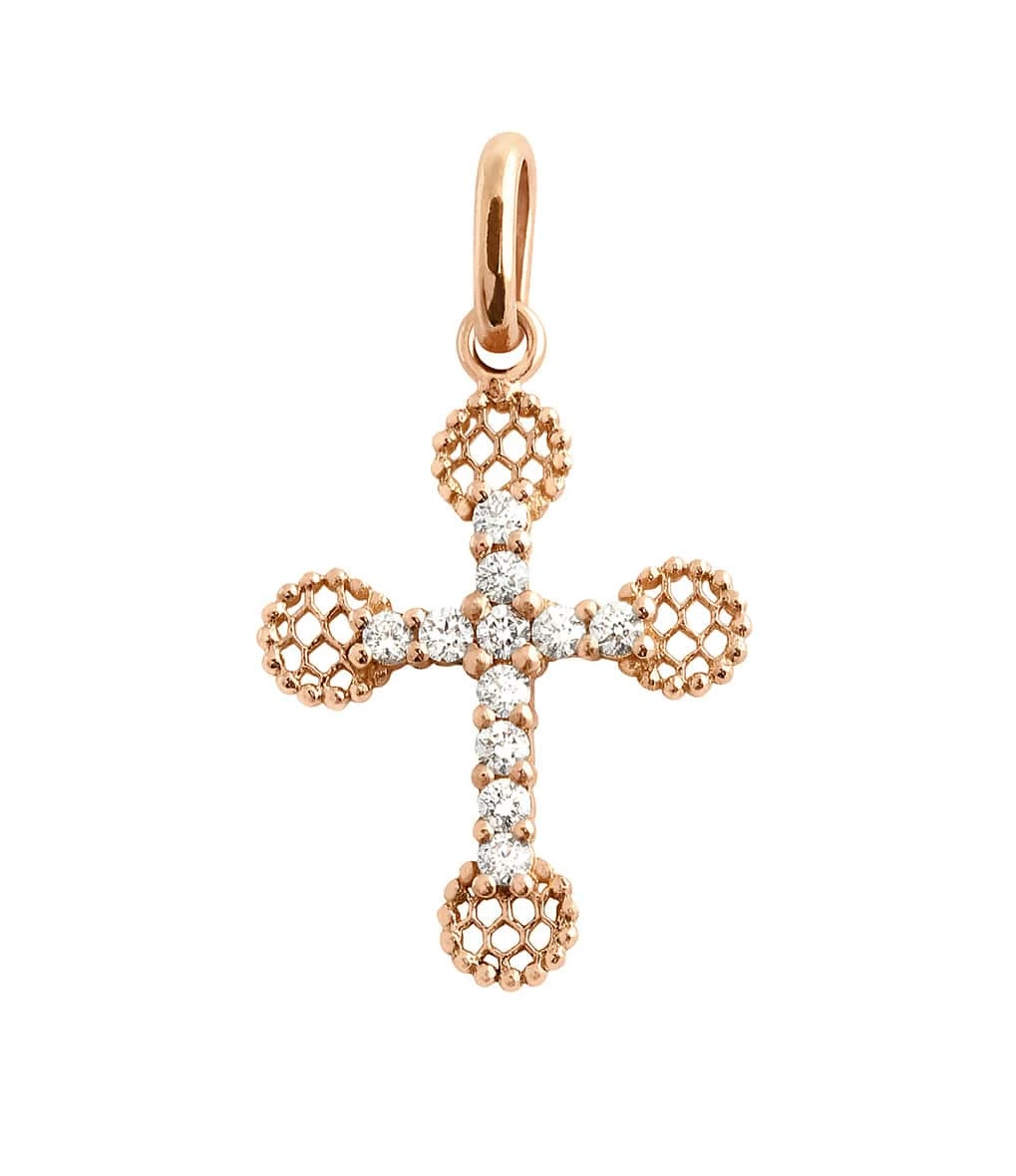 Pendentif Croix en or rose, jaune ou gris serti de 11 diamants blancs.