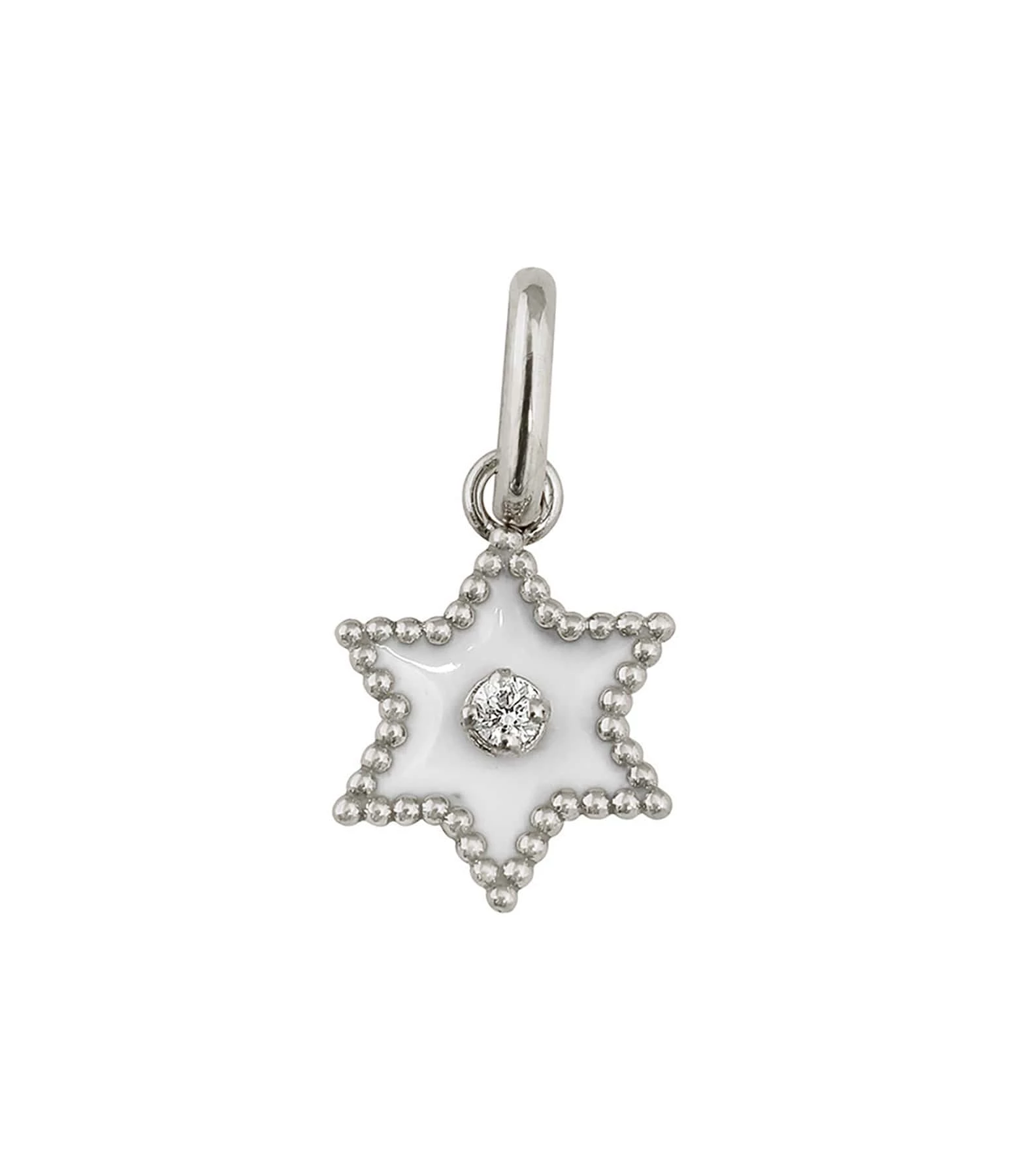 Pendentif médaille Étoile en or blanc agrémenté de résine et un diamant.
