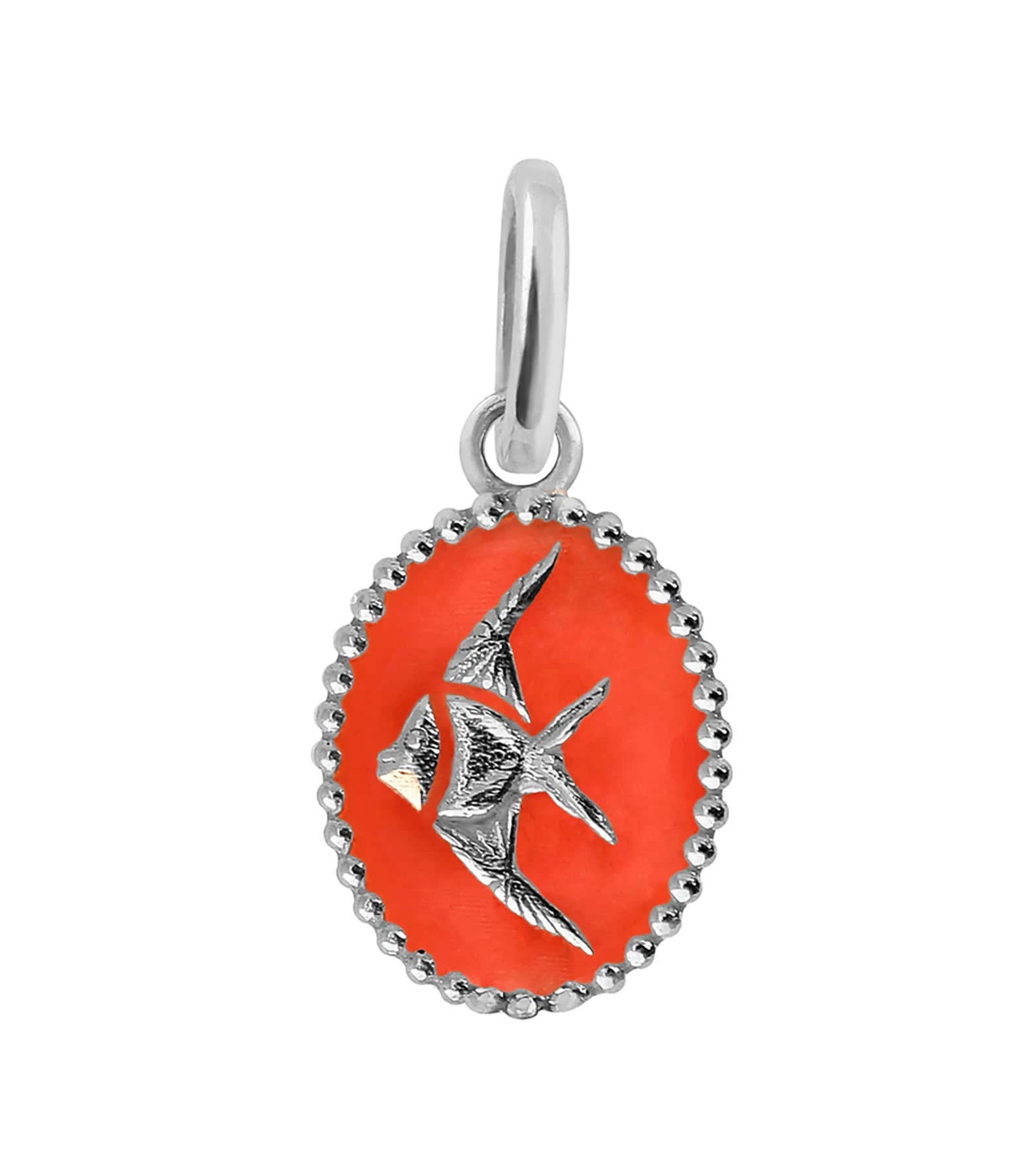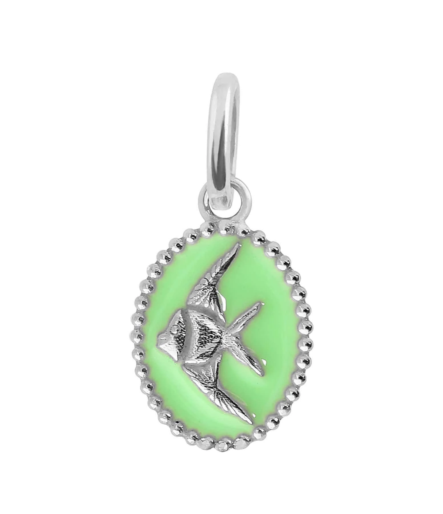 Pendentif médaille poisson en or blanc agrémenté de résine.