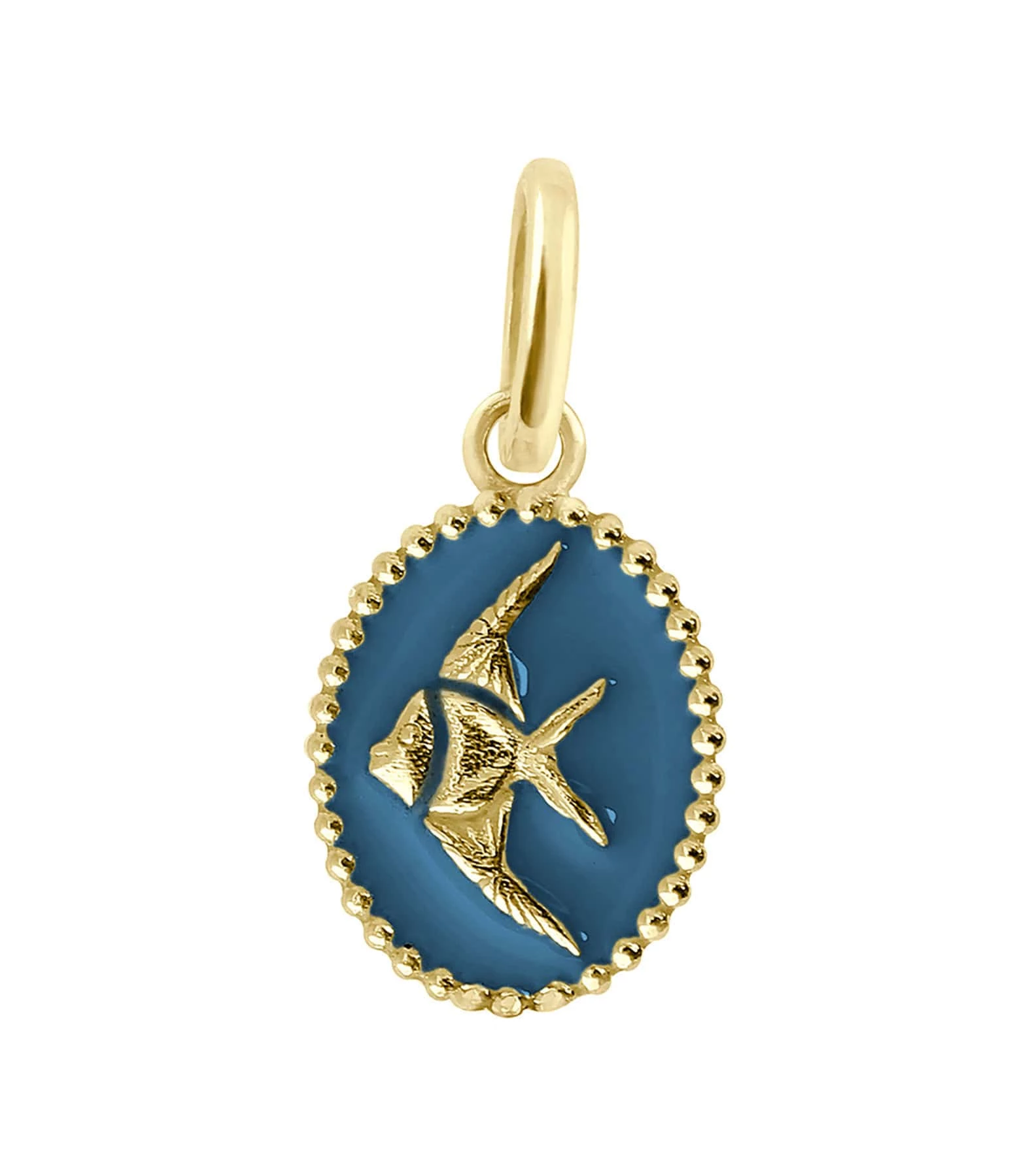 Pendentif médaille poisson en or jaune agrémenté de résine.