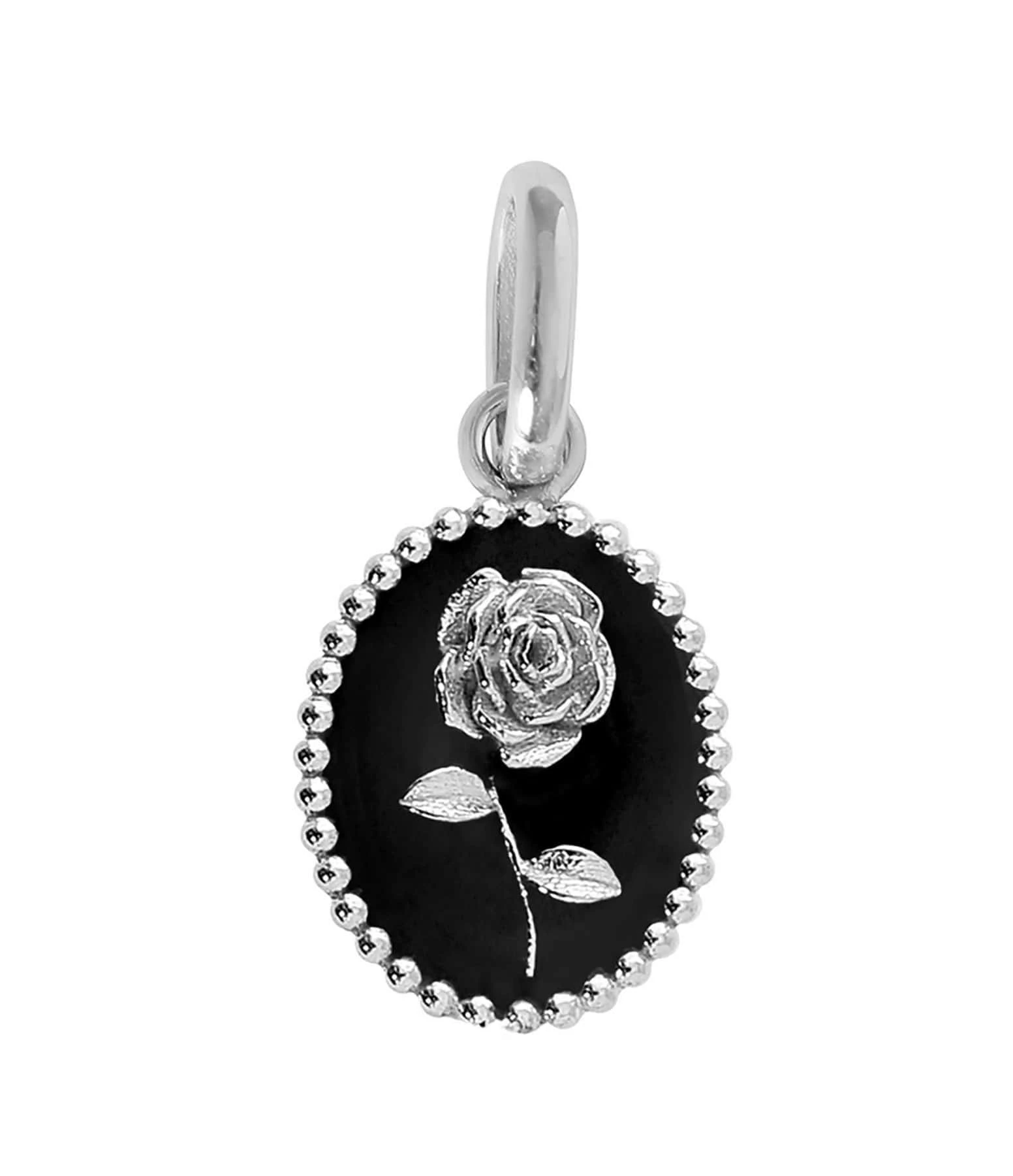 Pendentif médaille Rose en or blanc agrémenté de résine.