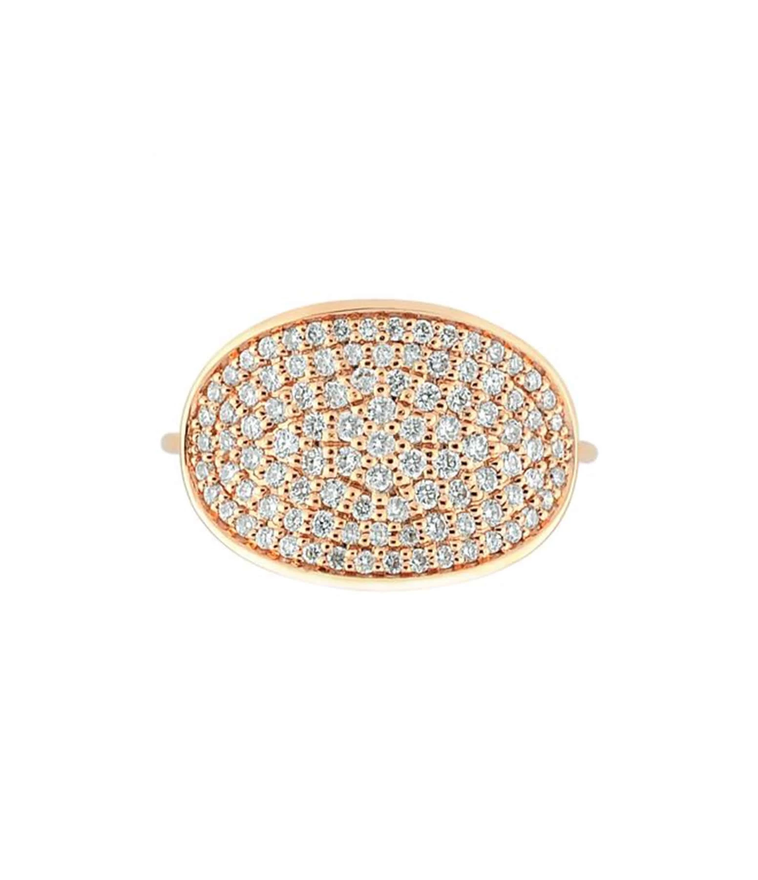 Bague en or rose pavée de diamants blancs.