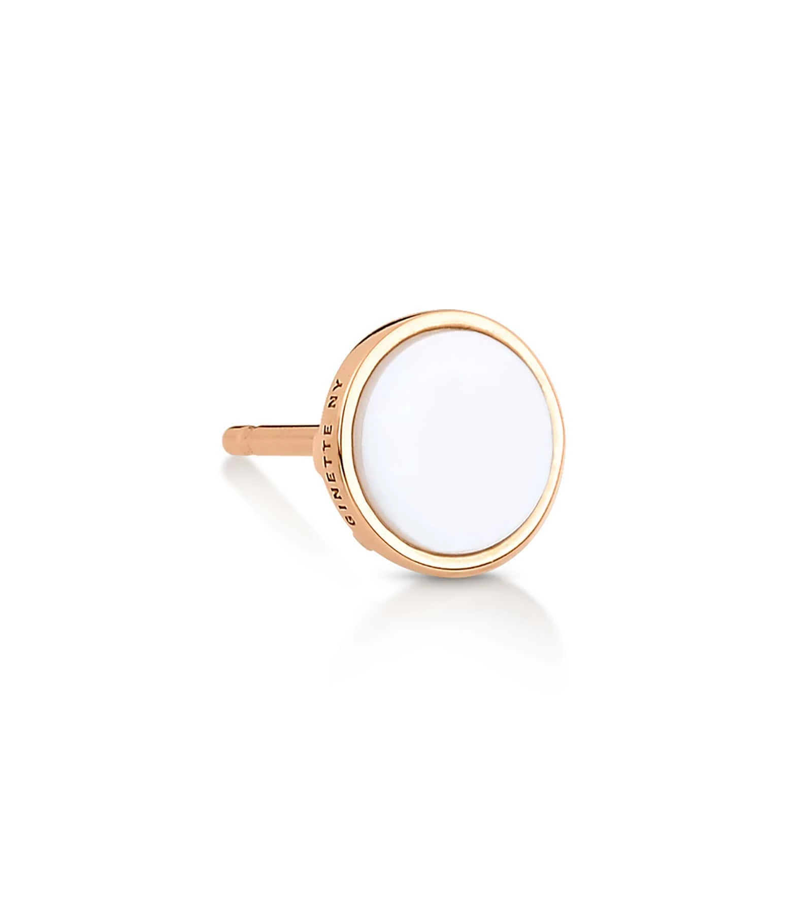 Boucle d’oreille en or rose agrémentées d’une pierre d’Agate blanche. Vendue à l’unité.