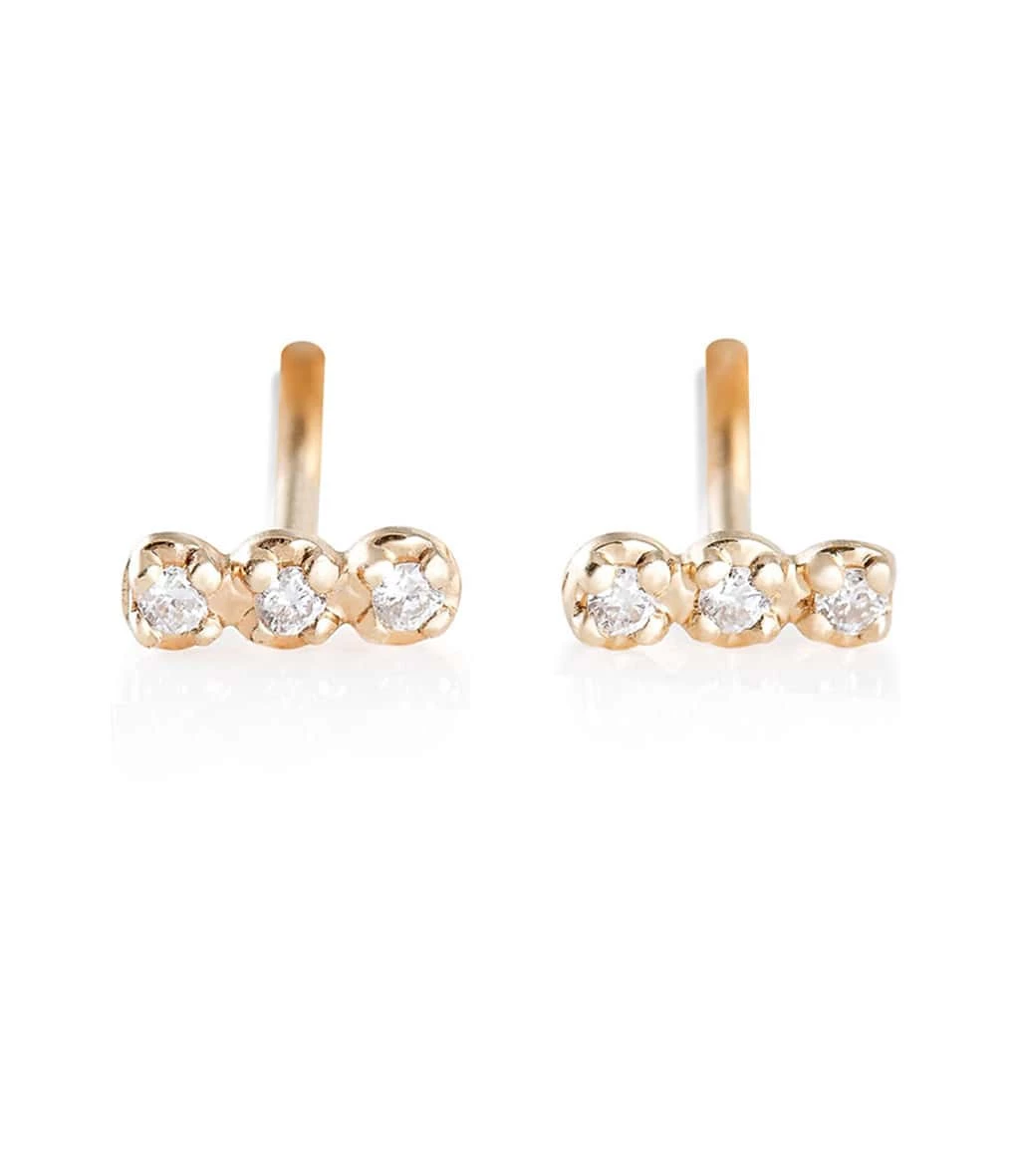 Boucles d’oreilles en or rose serties de diamants. Fermoir crochet.