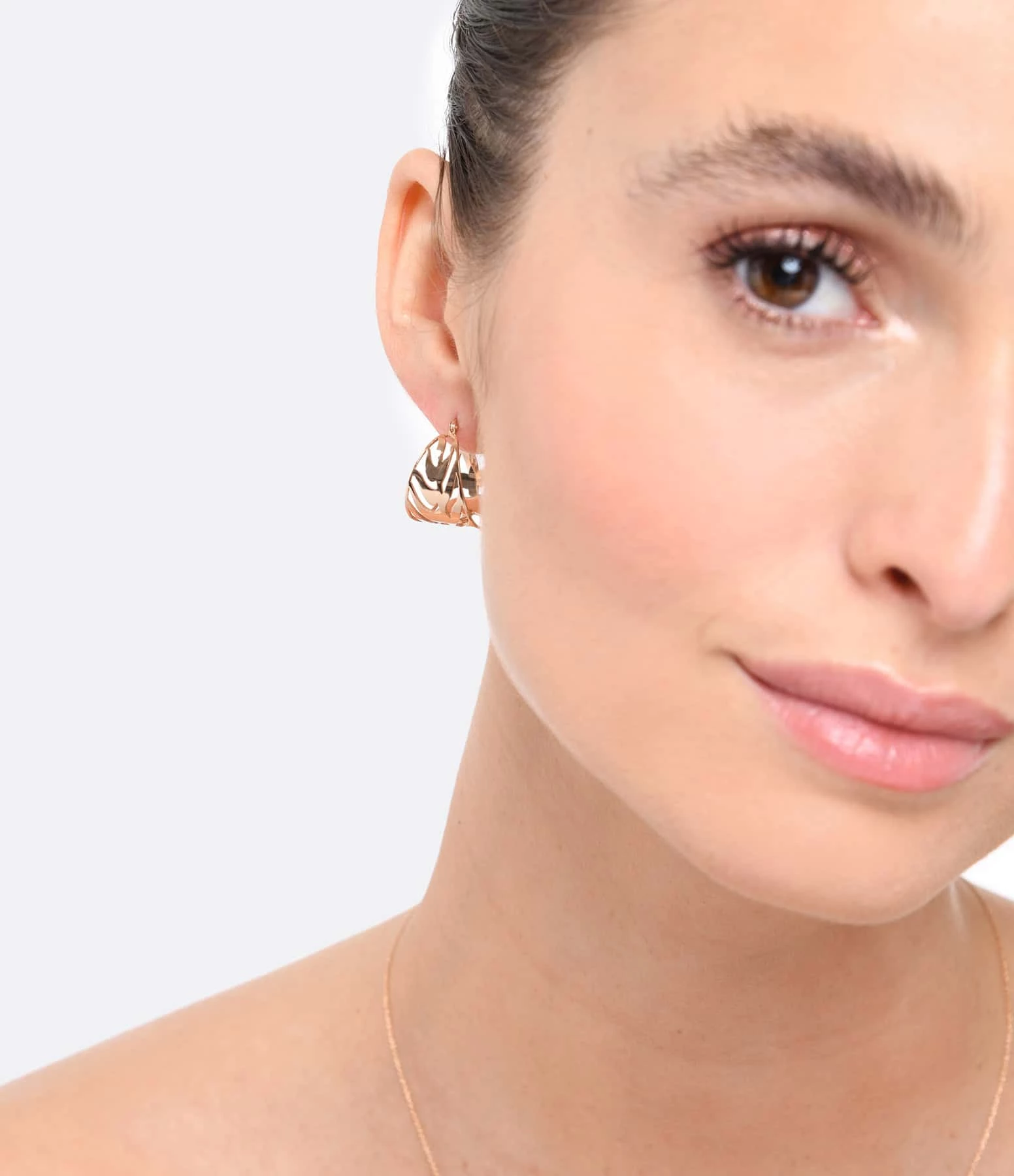 Boucles d’oreilles créoles en or rose en forme de feuille de palmier. Fermoir cliquet. Vendues à la paire.