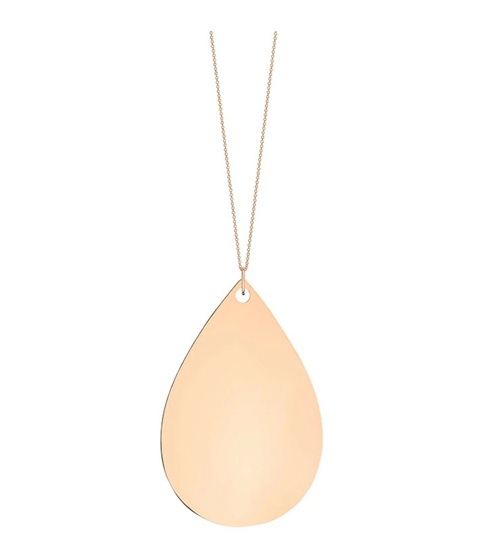 Collier sur chaîne en or rose avec pendentif en forme de goutte. Fermoir classique à ressort.
