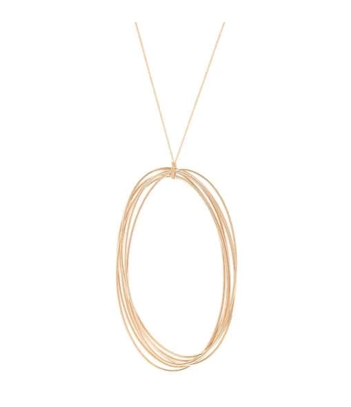 Collier sur chaîne en or rose avec plusieurs anneaux en pendentif. Fermoir classique à ressort.