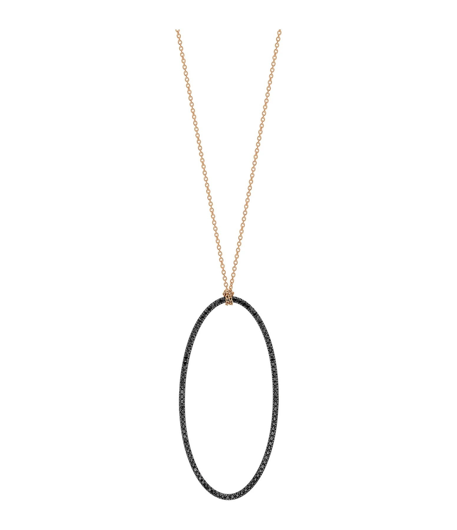 Collier en or rose avec pendentif ovale serti de diamants noirs. Fermoir classique à ressort.