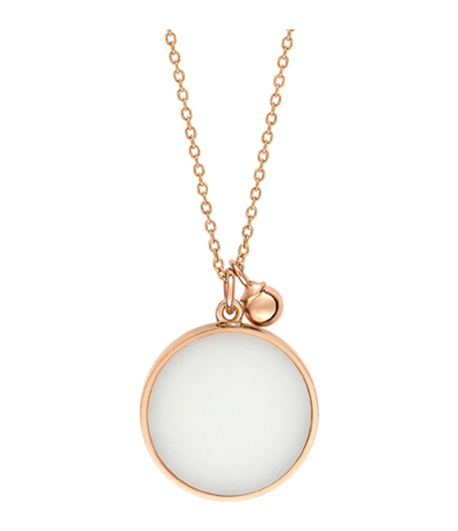 Collier sur chaîne en or rose avec pendentif en Agate Blanche. Fermoir classique avec contre-anneau et ressort.