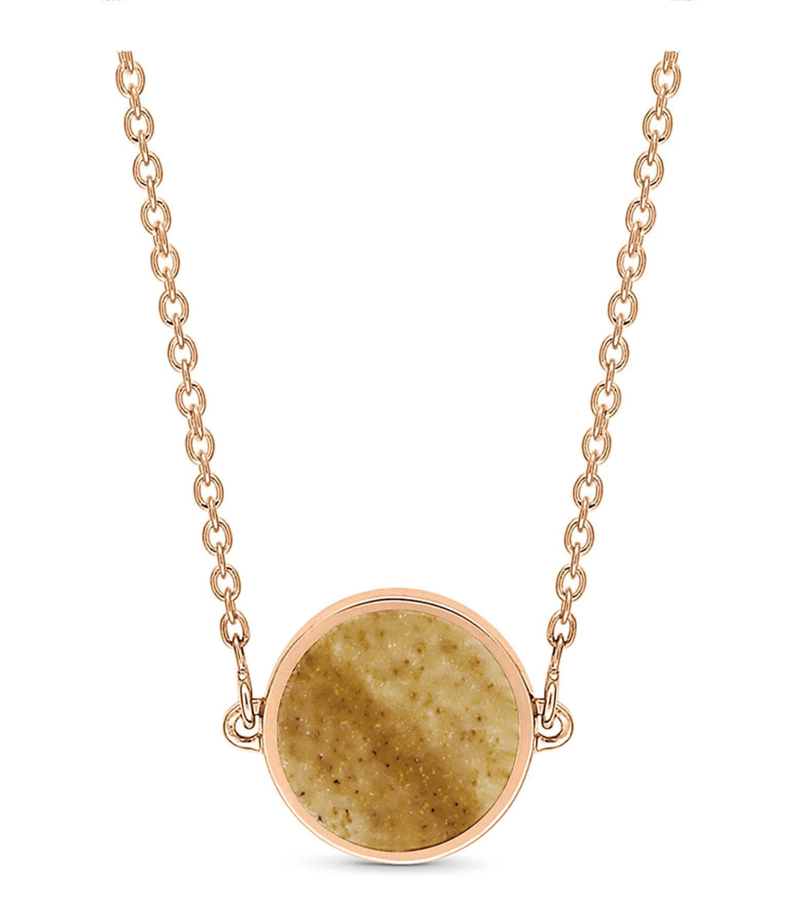 Collier sur chaîne en or rose avec pendentif en jaspe. Fermoir anneau ressort avec un contre-anneau.
