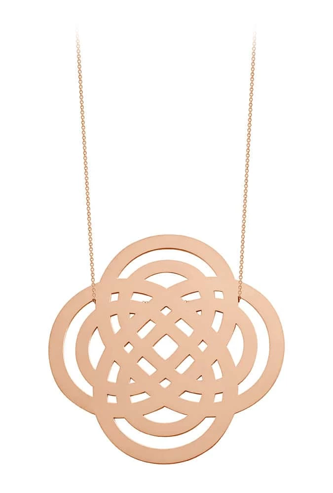 Collier sur chaîne en or rose avec pendentif. Fermoir classique à ressort.