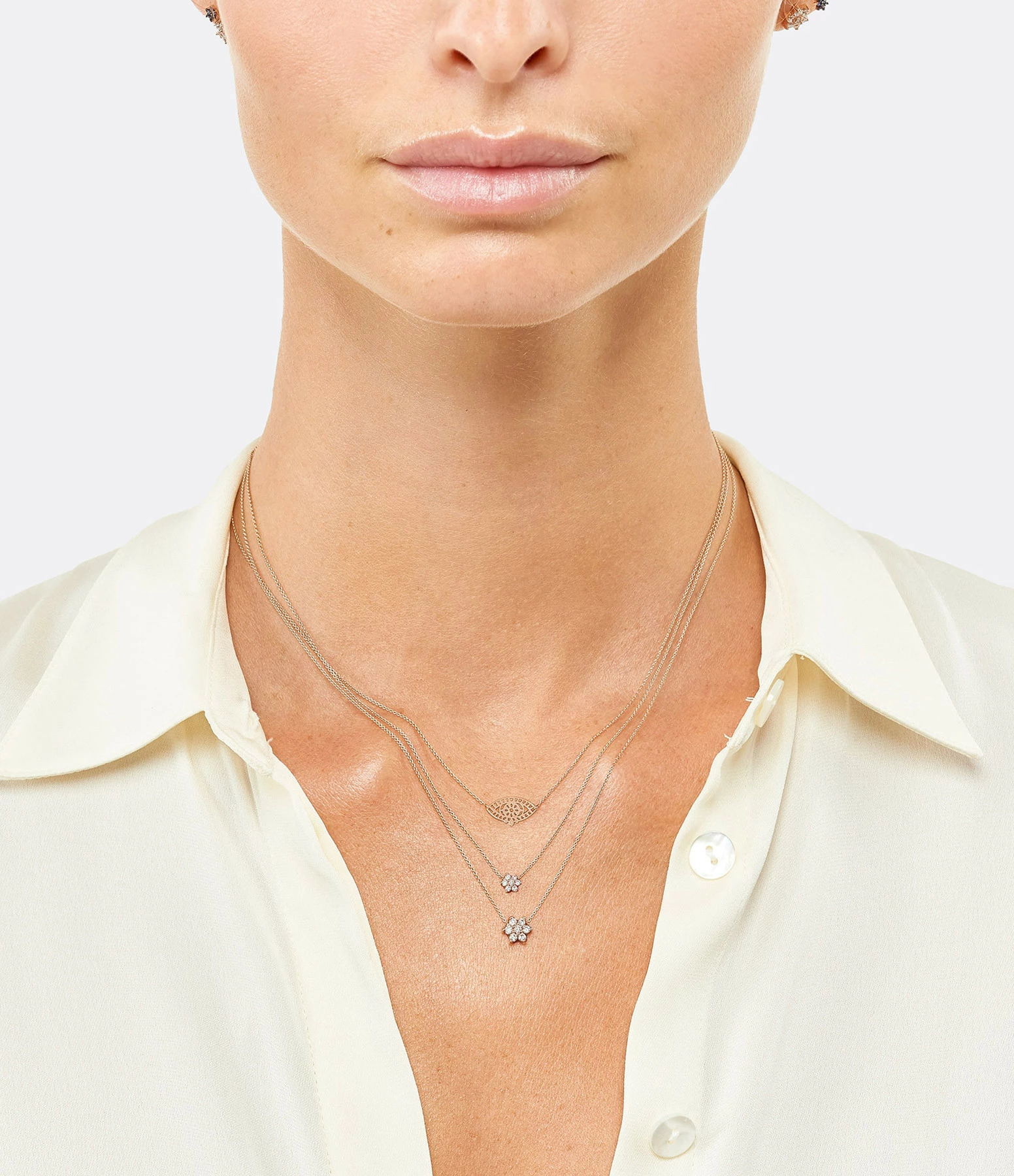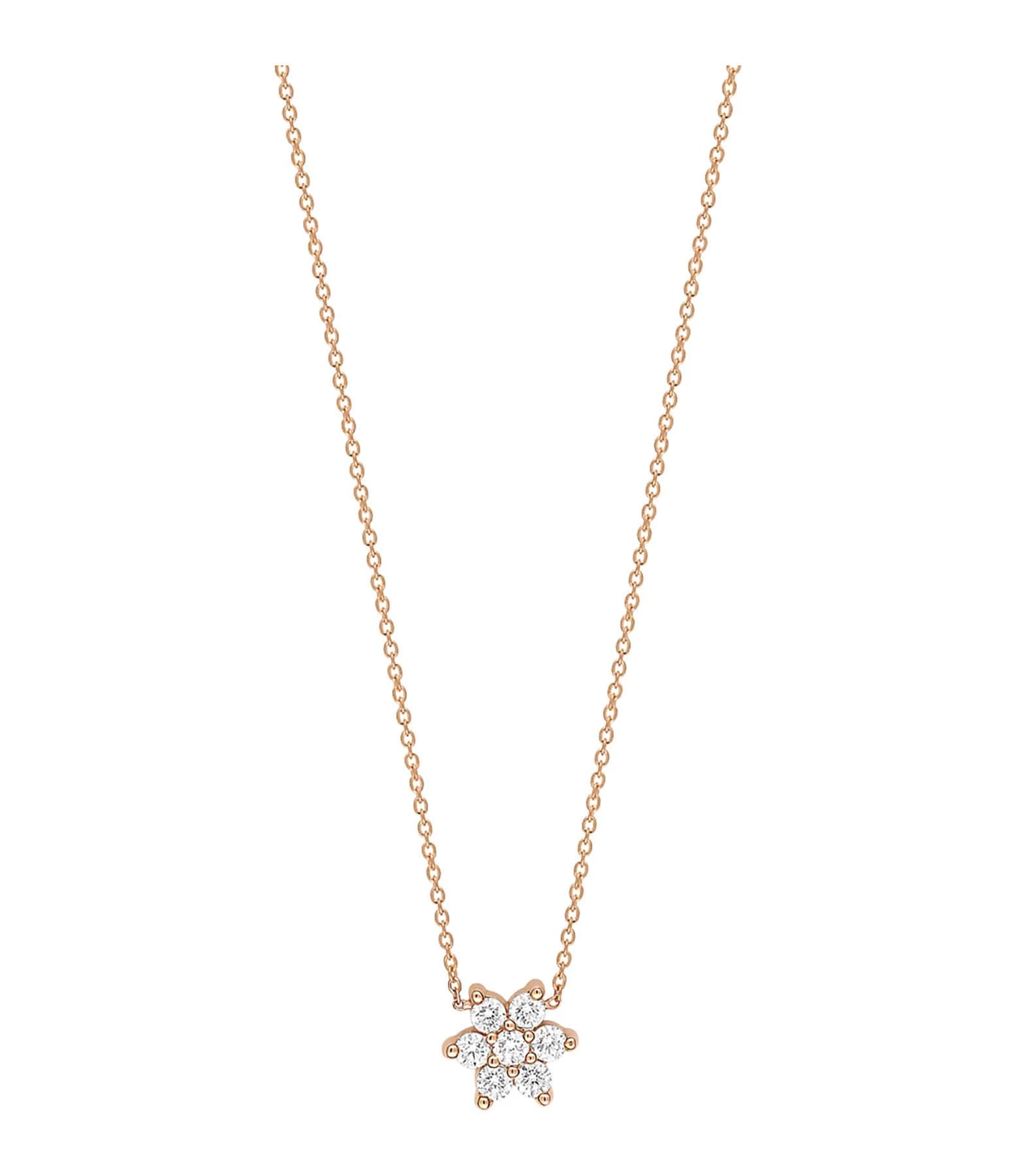 Collier en or rose, pendentif étoile en diamants. Fermoir à ressort avec contre-anneau.
