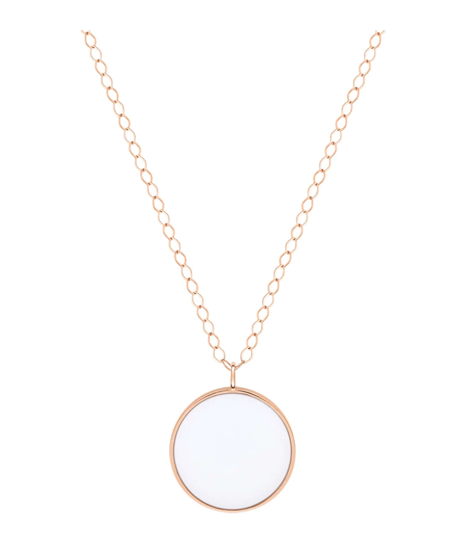 Collier sur chaîne en or rose avec pendentif en Agate Blanche. Fermoir classique ressort.