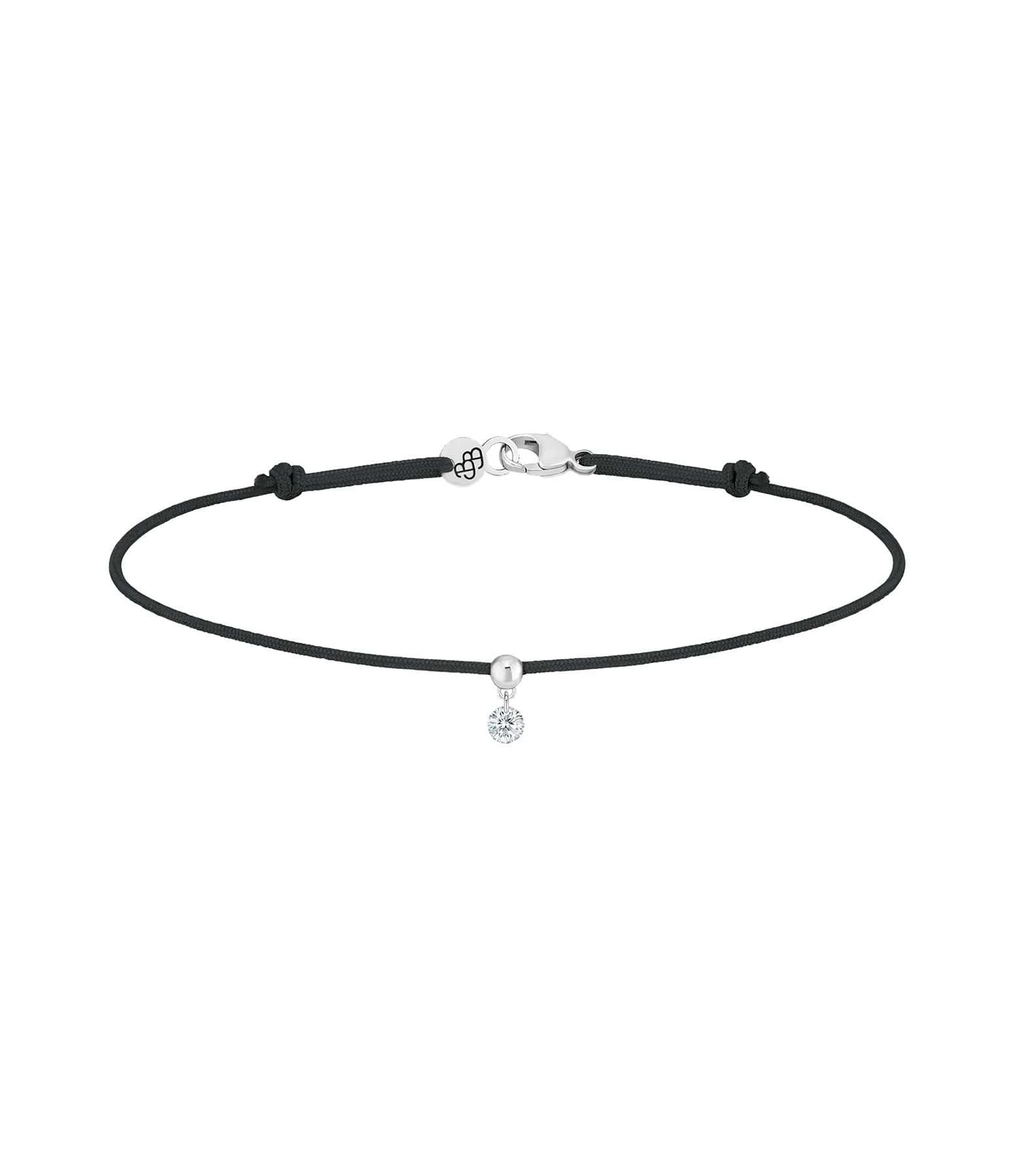 Bracelet sur cordon noir agrémenté d’un diamant monté sur une perle en or. Cordon ajustable par nœud coulissant. Fermoir classique à ressort.