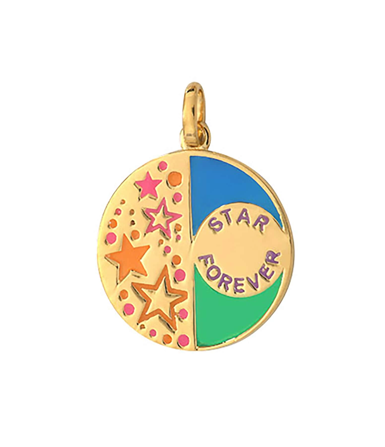 Médaille en laiton plaqué or avec émail coloré « STAR ».