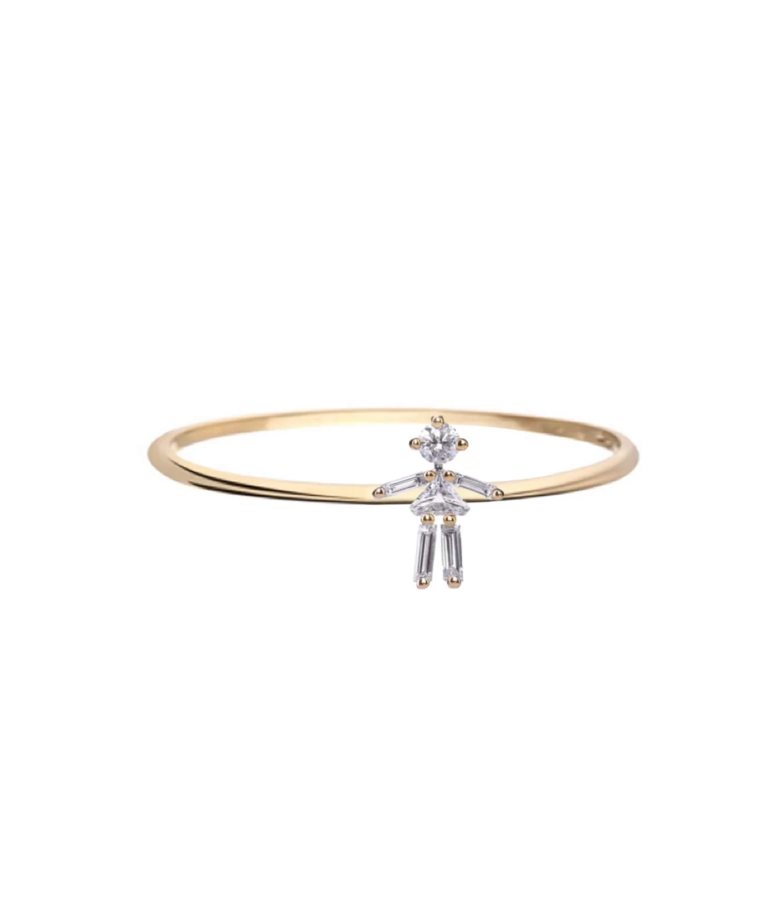 Bague en or jaune avec petite fille sertie de 6 diamants naturels taillés.