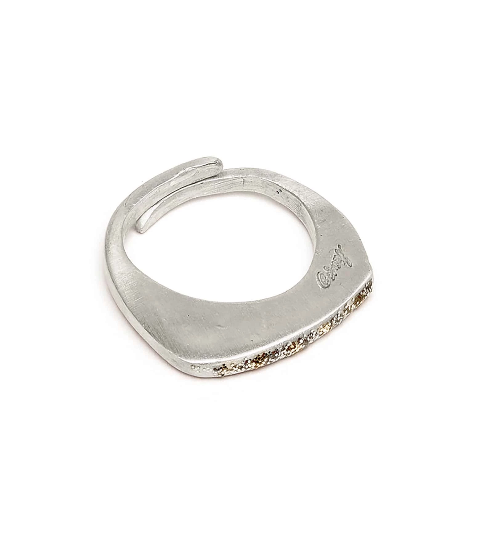 Bague en argent massif avec émail diamanté argenté de paillettes d’or. Ajustable.