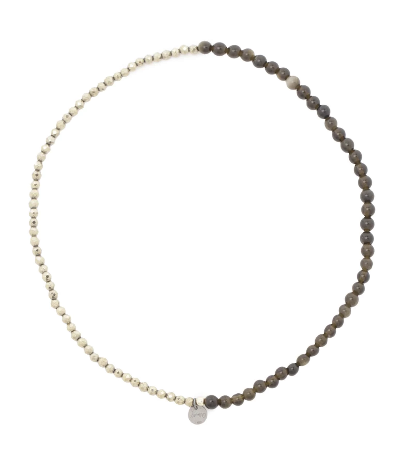 Bracelet élastique double tour agrémenté de pyrites kaki et obsidiennes.