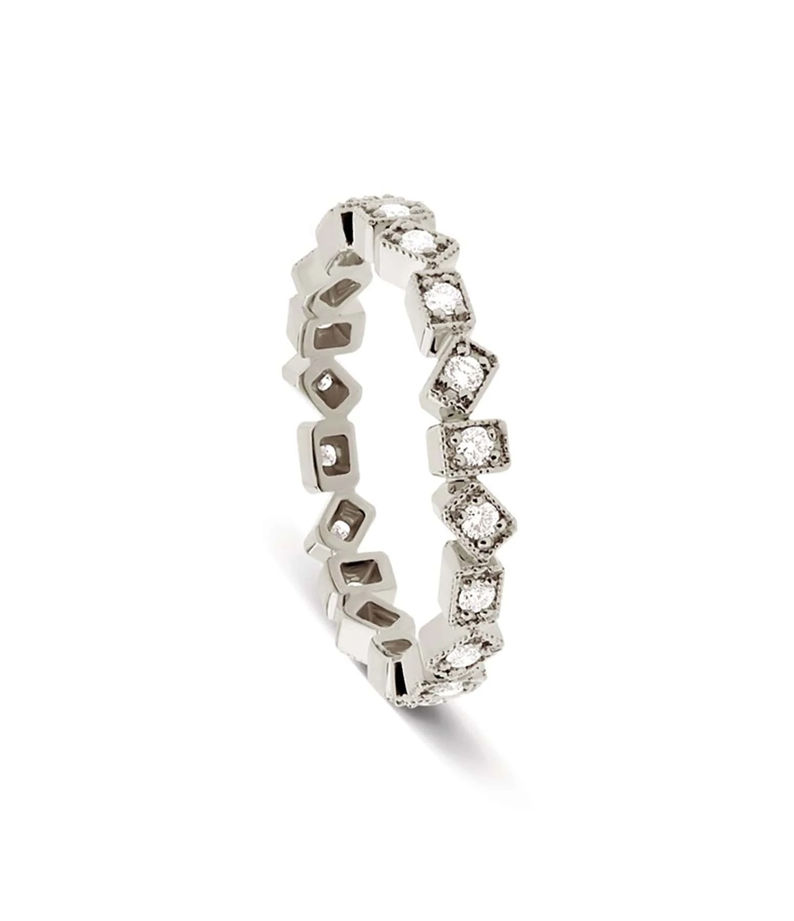 Alliance en or blanc sertie de diamants. Motifs en forme de rectangles.