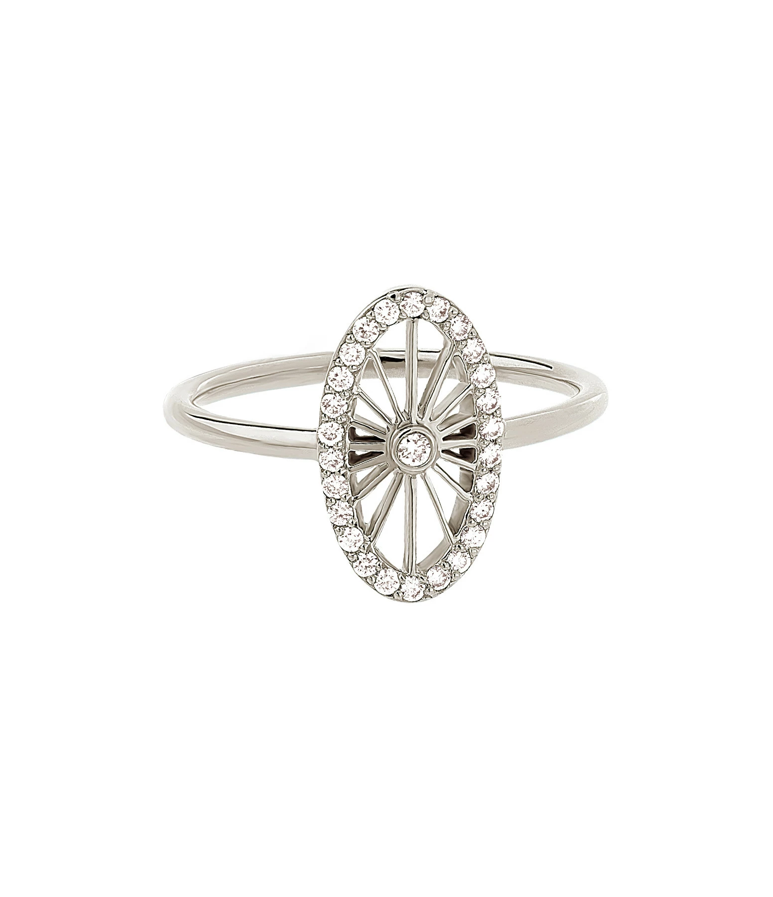 Bague en or blanc ovale sertie de diamants ronds.