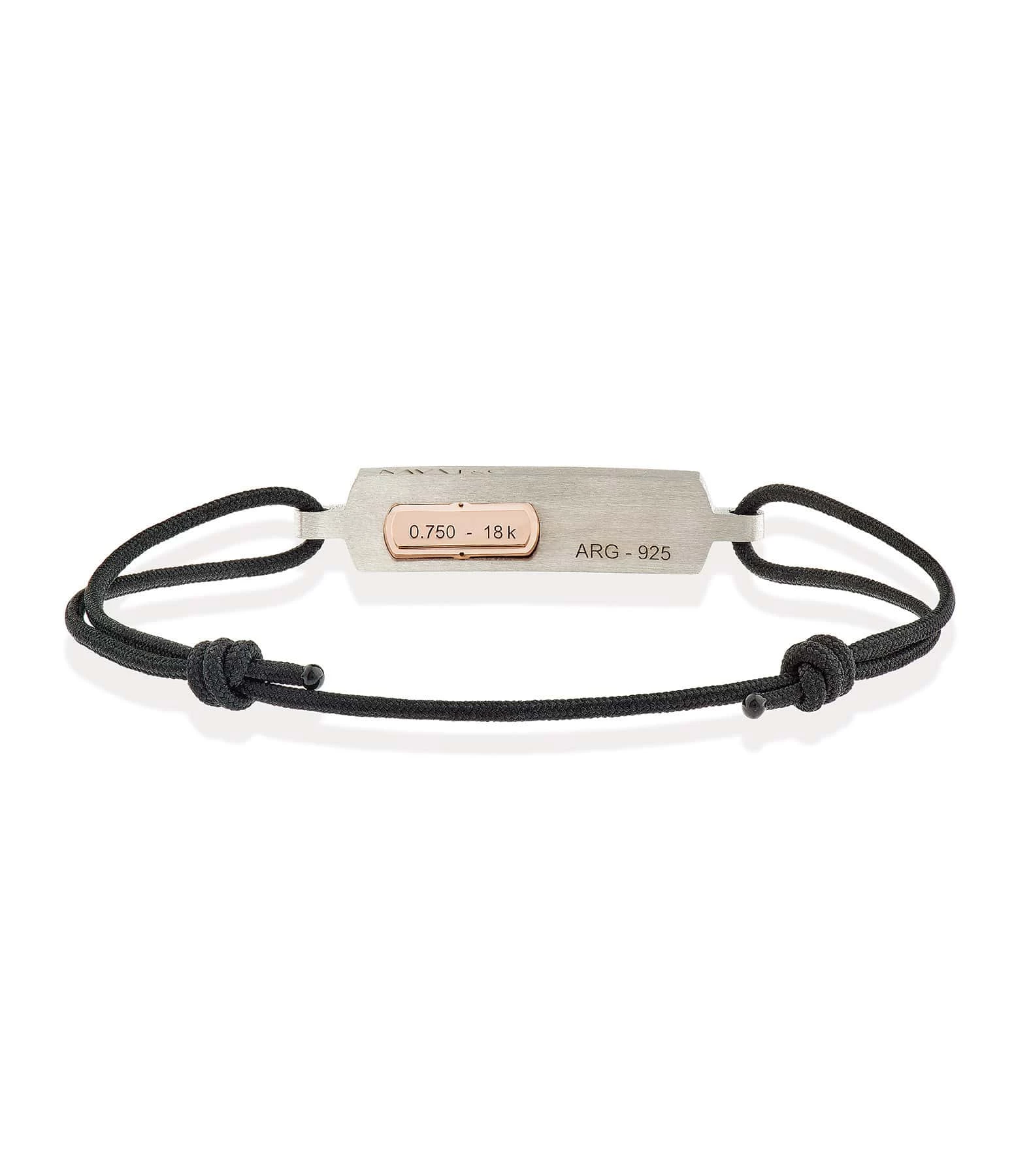Bracelet pour homme sur cordon noir. Plaque en argent et or rose.