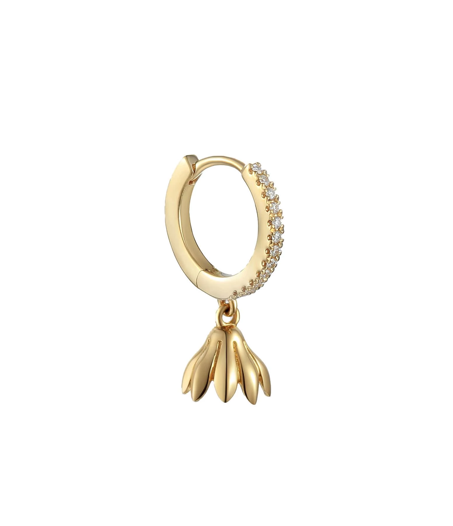 Mini créole en or jaune semi-pavée de diamants blancs, fleur d’anémone en mouvement. Fermoir cliquet.
