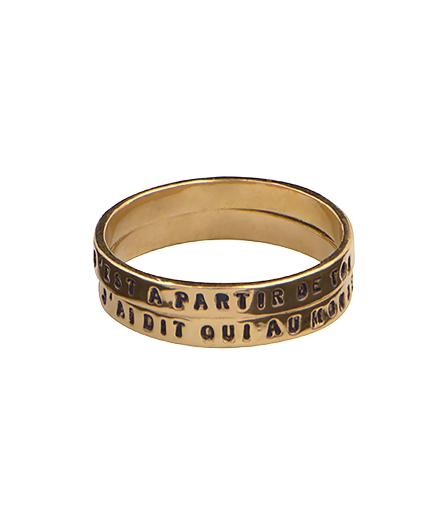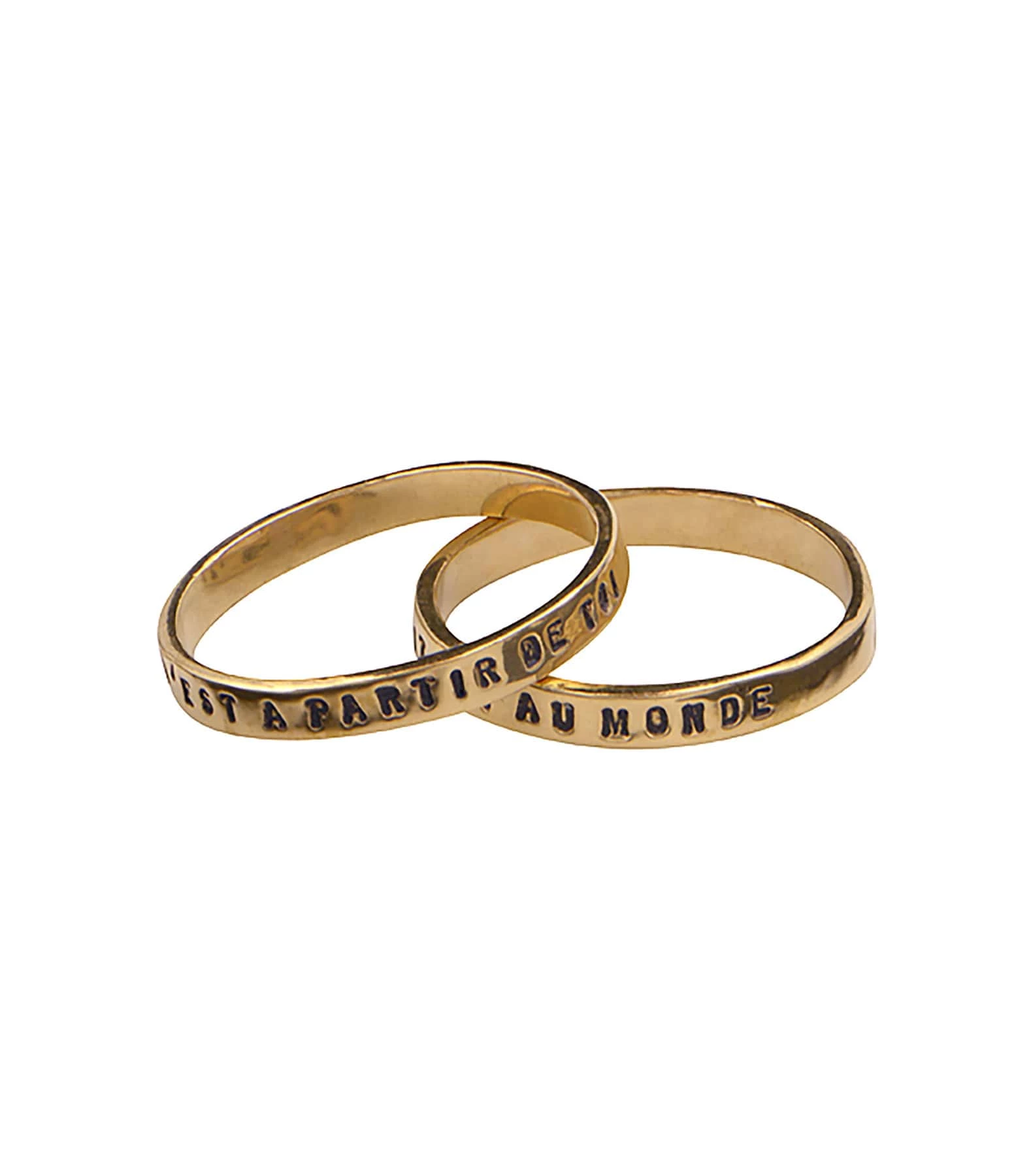 Deux bagues en vermeil avec gravure « C’EST A PARTIR DE TOI » et « QUE J’AI DIT OUI AU MONDE ».