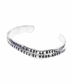 Conseil d’entretien : Afin de conserver longtemps la patine noire dans la gravure de votre bijou, évitez les contacts avec l’eau les premières semaines. L’argent est une matière naturelle qui se patine avec le temps, sa couleur évoluera selon l’acidité de votre peau et les conditions atmosphériques. Utilisez un chiffon doux et un produit adapté pour le nettoyer en évitant d’effacer la patine, rincer abondamment, puis essuyez.