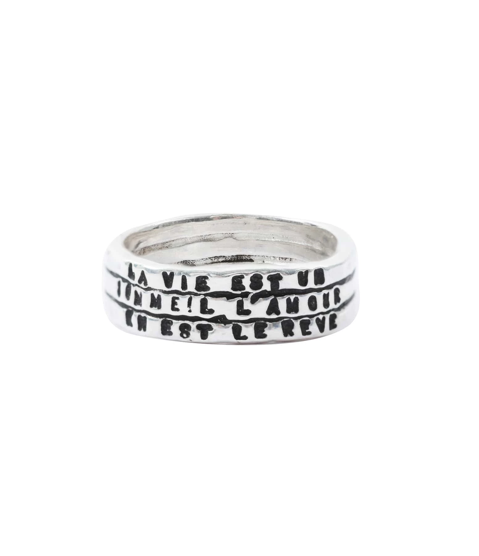 Bague en argent effet trois bagues superposées avec gravure « La vie est un sommeil l’amour en est le rêve ».