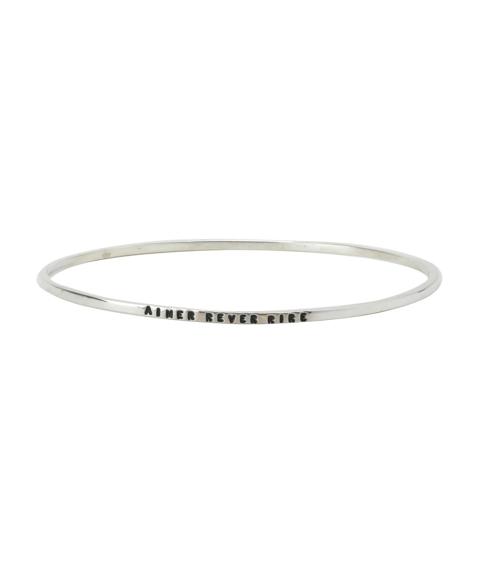 Bracelet jonc en argent avec gravure « Aimer Rêver Rire ».
