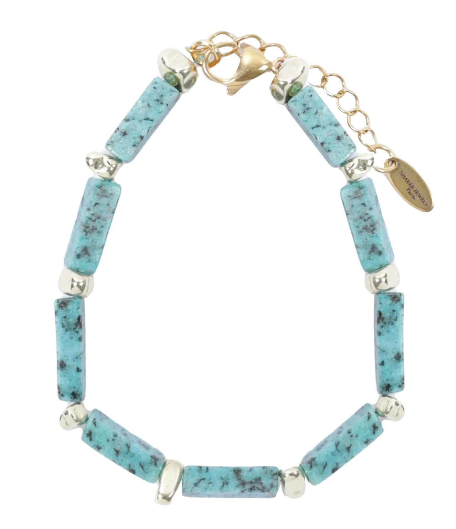 Bracelet en perles rectangulaires de Jade Bleu-Vert. Fermoir classique à ressort.