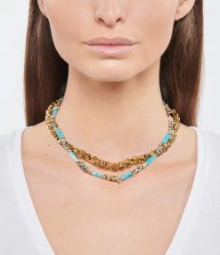 Bracelet en chaîne maille forçat. Pierre naturelle turquoise. Fermoir à cliquet ovale.