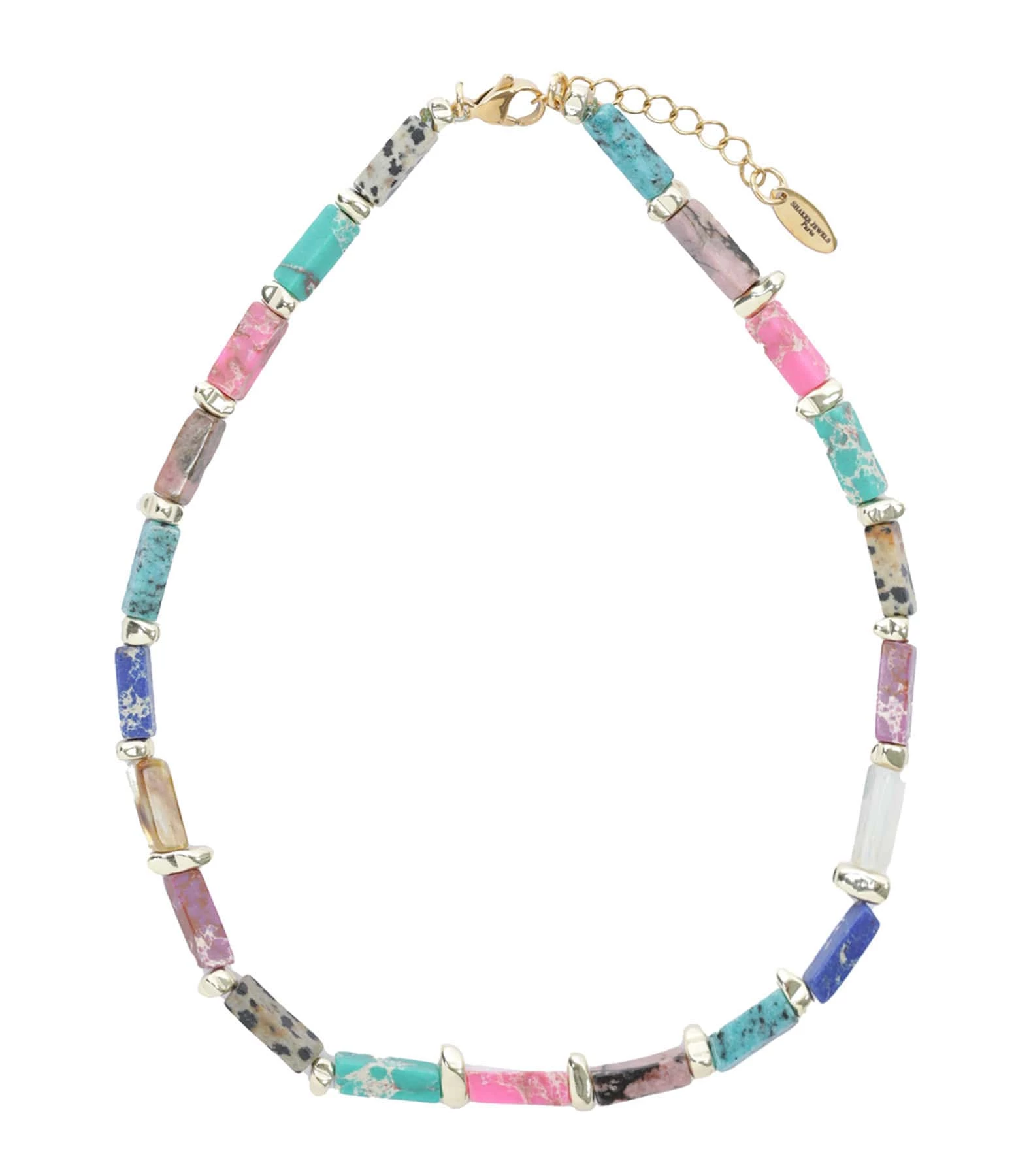 Collier en perles rectangulaires naturelles multicolores. Fermoir classique à ressort.
