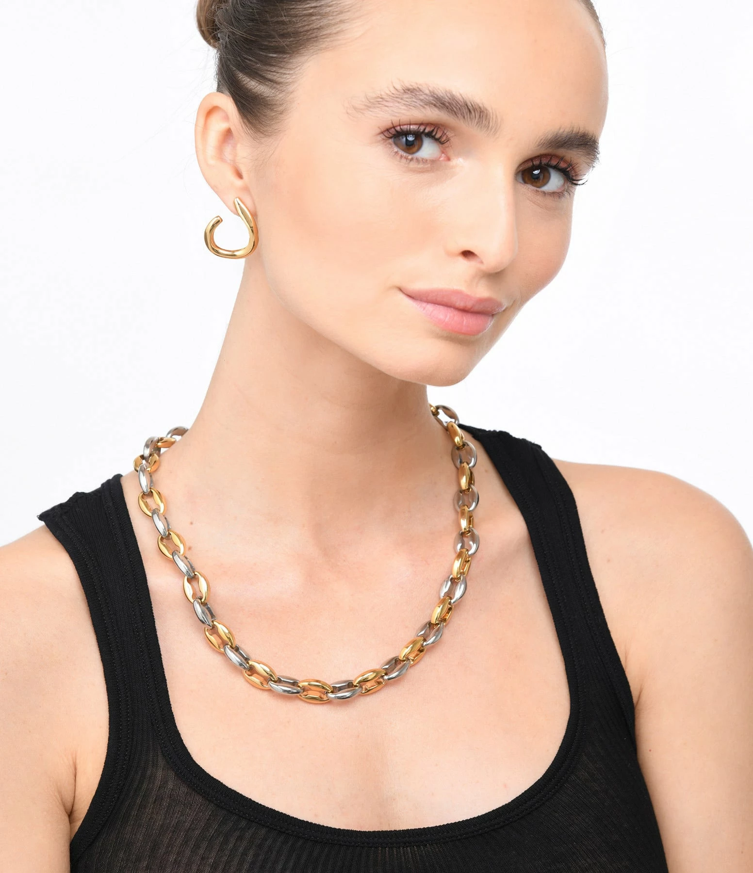 Collier en grosse maille doré et argenté. Fermoir à cliquet ovale.