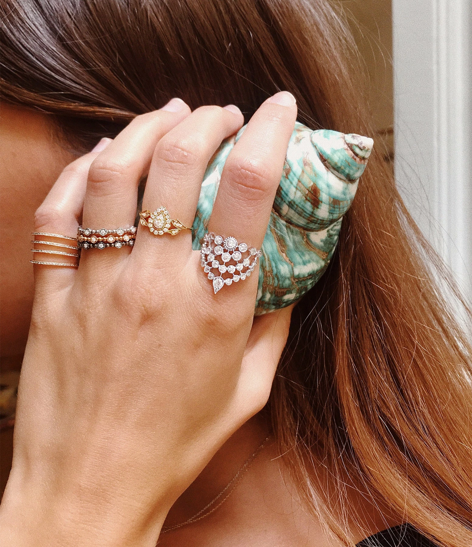 Conseil stylistique : Les pièces de la collection « Charmante » sont les indispensables d’une boîte à bijoux. Des bagues fines ornées de diamants, des boucles d’oreilles suivant délicatement la courbe de l’oreille, des créoles extrêmement fines et intemporelles déclinées en version bicolore : de magnifiques pièces qui vous seront indispensables.