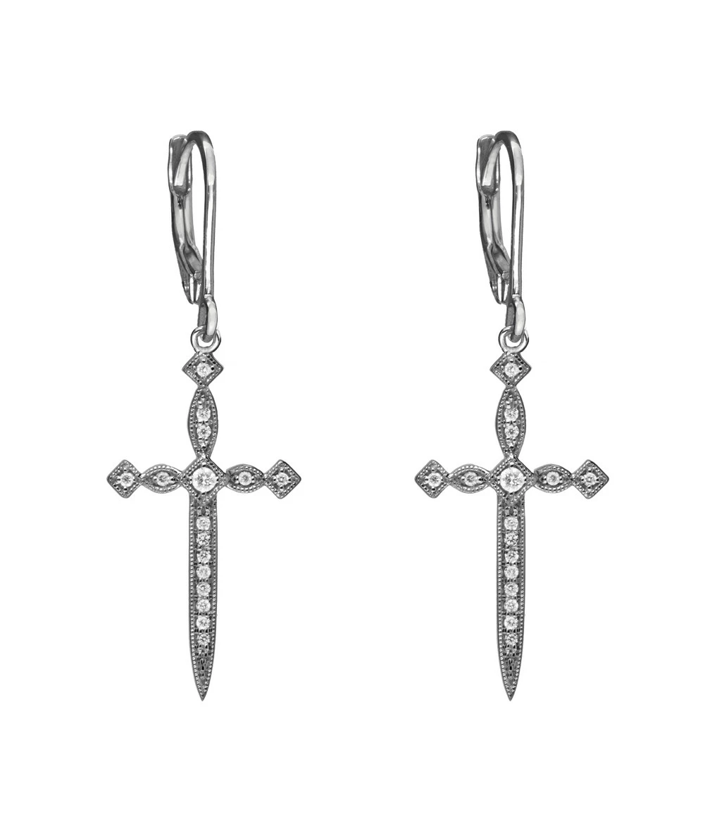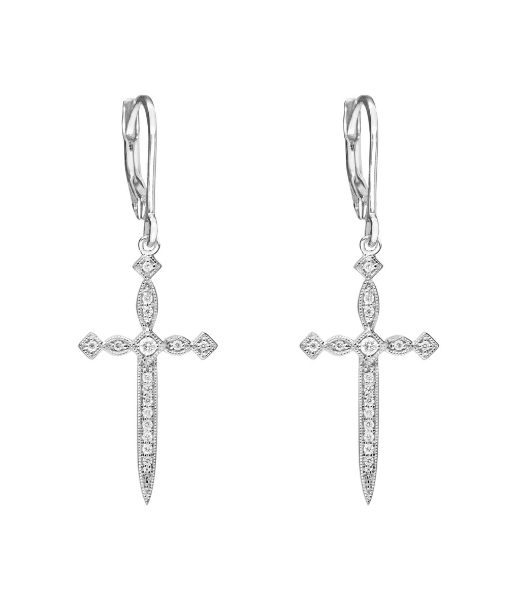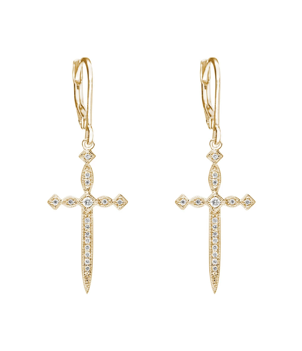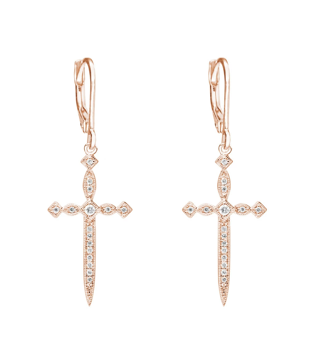 Boucles d’oreilles pendantes en or jaune, rose, blanc ou noir serties de 32 diamants blancs. Fermoirs crochets.