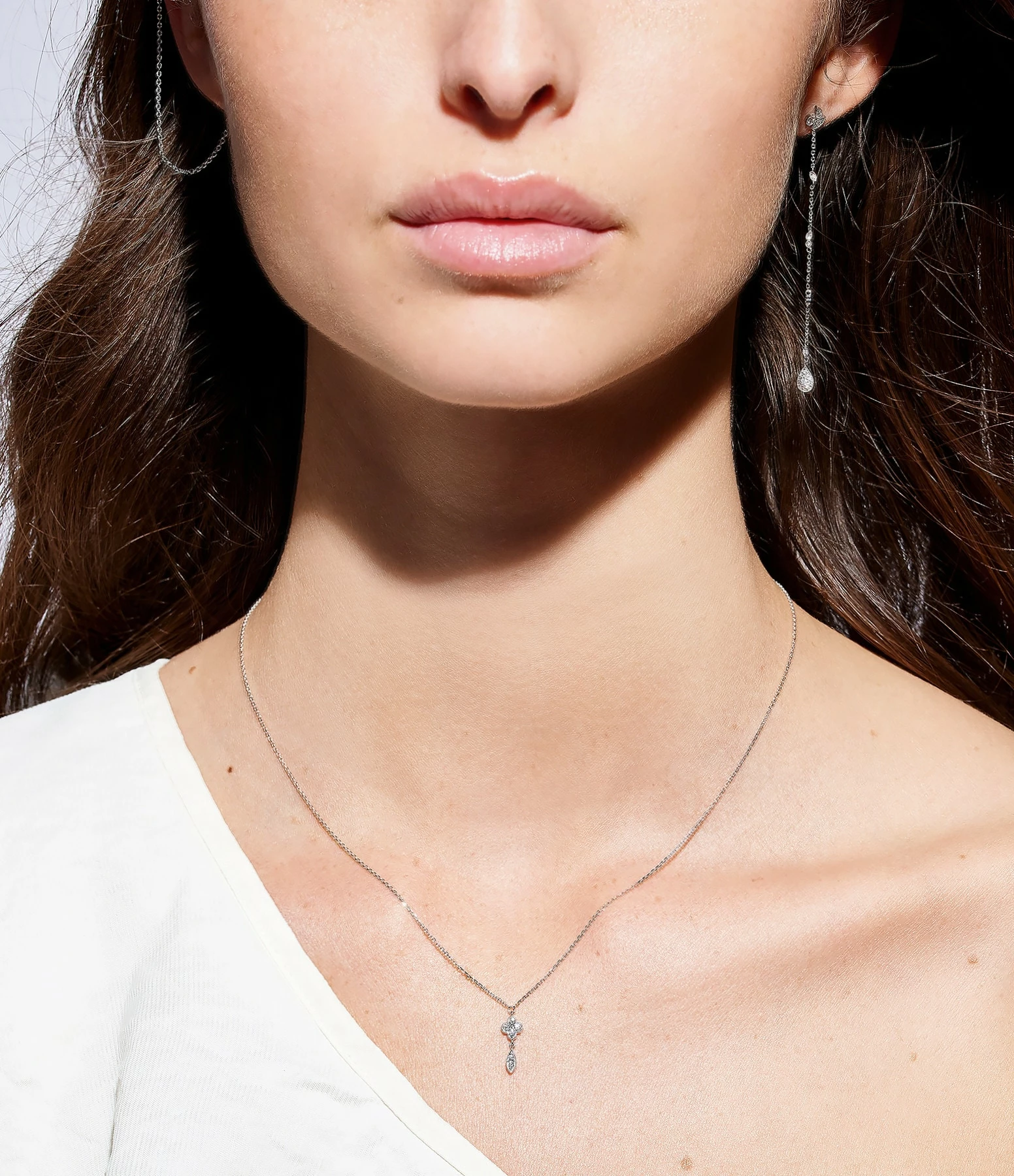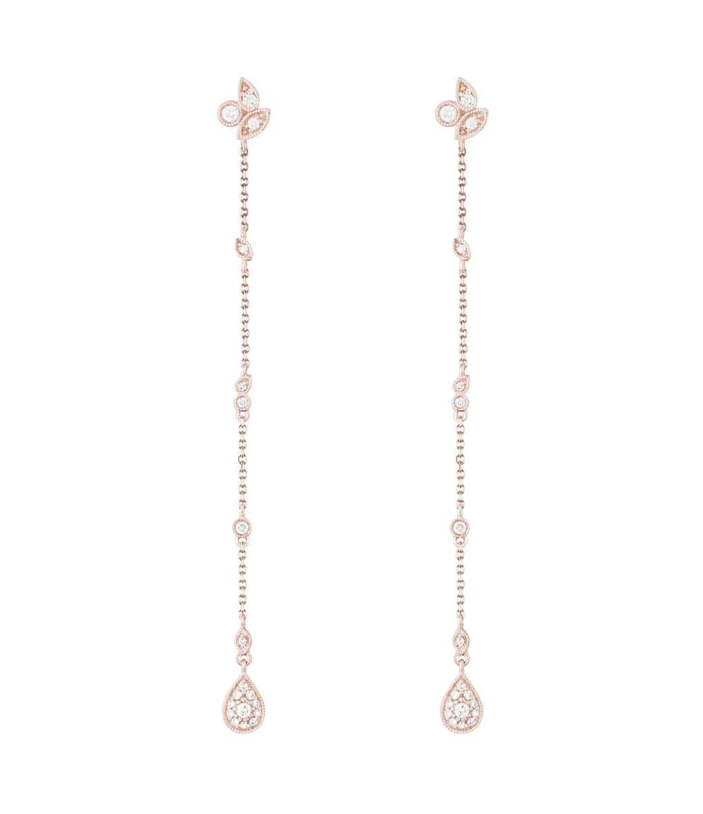 Boucles d’oreilles longues sur chaîne en or serties de 38 diamants. Fermoirs ALPA sécurisés.