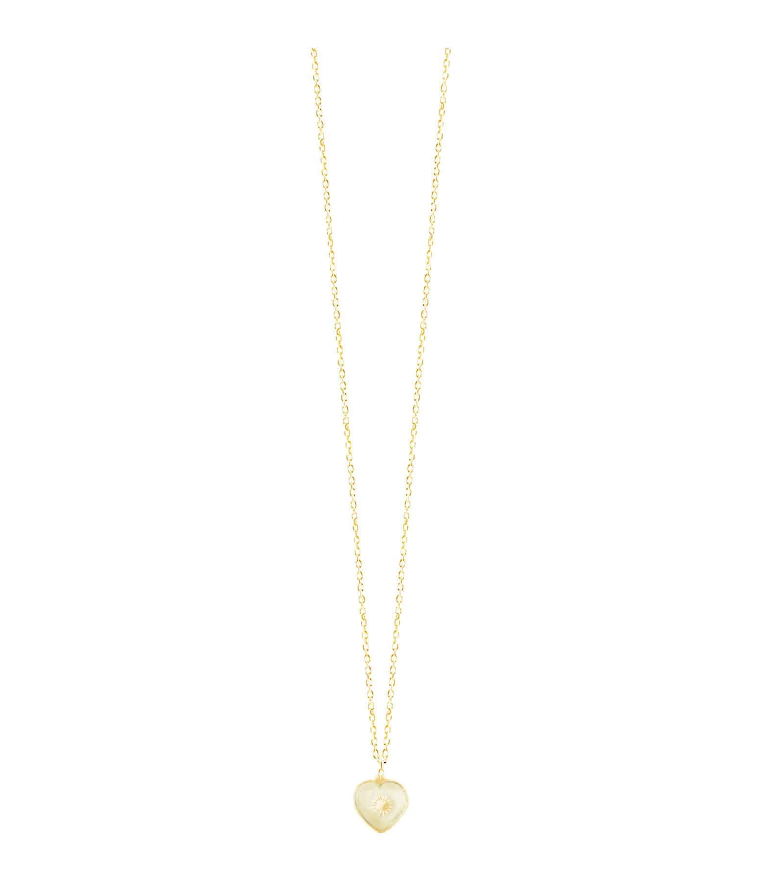 Collier sur chaîne en argent doré, pendentif cœur en quartz jaune avec un soleil en argent doré. Fermoir classique à ressort.